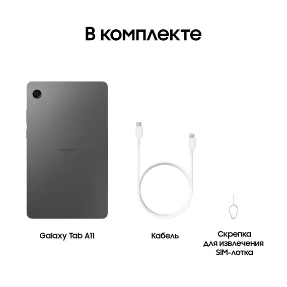 Планшет Samsung Galaxy Tab A11 BSM-X130 G99 (2.2) 8C RAM4Gb ROM64Gb 8.7" TFT 1340x800 Android 15 графит 8Mpix 5Mpix BT WiFi microSD 2Tb 5100mAh 7hr [SM-X130NZAACAU]
