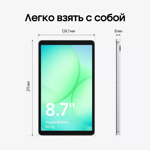 Планшет Samsung Galaxy Tab A11 BSM-X130 G99 (2.2) 8C RAM4Gb ROM64Gb 8.7" TFT 1340x800 Android 15 серебристый 8Mpix 5Mpix BT WiFi microSD 2Tb 5100mAh 7hr [SM-X130NZSACAU]