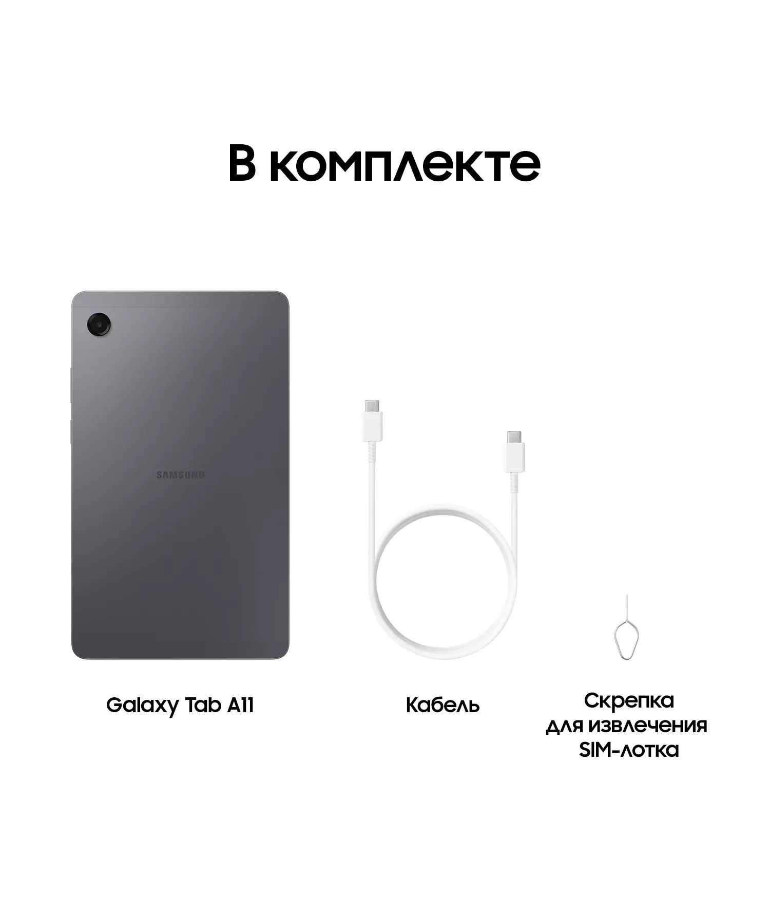 Планшет Samsung Galaxy Tab A11 BSM-X135F G99 (2.2) 8C RAM4Gb ROM64Gb 8.7" TFT 1340x800 4G Android 15 графит 8Mpix 5Mpix BT WiFi microSD 2Tb 5100mAh 7hr [SM-X135FZAACAU]