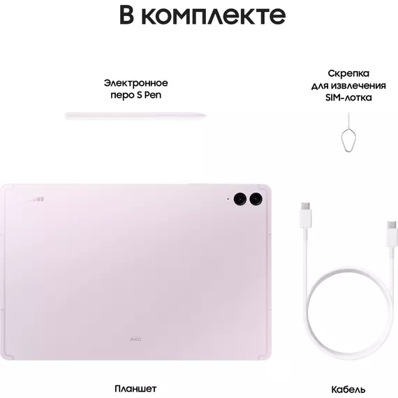 | Комплект поставки | Планшет, электронное перо S Pen, кабель Type-C (m) - Type-C (m), скрепка для извлечения SIM-лотка, документация |