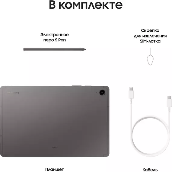 | Комплект поставки | Планшет, электронное перо S Pen, кабель Type-C (m) - Type-C (m), скрепка для извлечения SIM-лотка, документация |