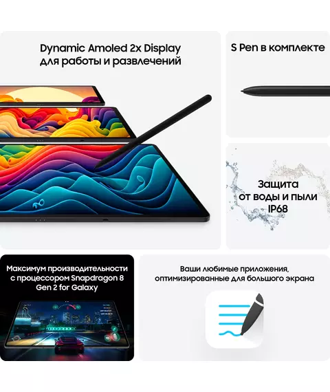| Комплект поставки | Планшет, электронное перо S Pen, кабель Type-C (m) - Type-C (m), скрепка для извлечения SIM-лотка |