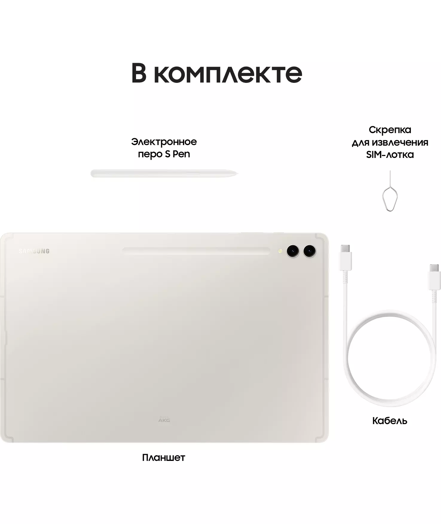 | Комплект поставки | Планшет, электронное перо S Pen, кабель Type-C (m) - Type-C (m), скрепка для извлечения SIM-лотка |