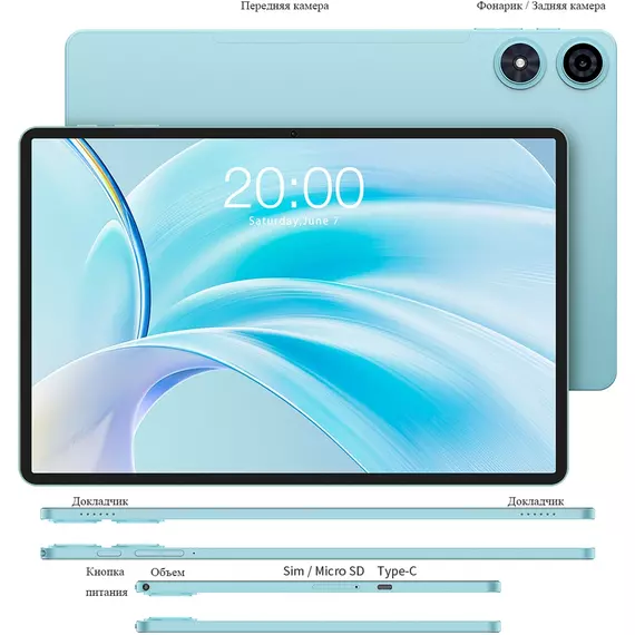 Планшет Teclast P50 T606 1.6 8C RAM8Gb ROM128Gb 10.92" IPS 1280x800 4G 1Sim Android 15 голубой 8Mpix 5Mpix BT WiFi microSD 1Tb 7000mAh 12hr