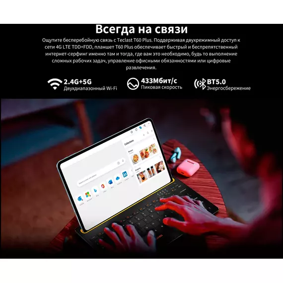 Планшет Teclast T60 Plus G88 (2.0) 8C RAM6Gb ROM128Gb 11.97" IPS 2000x1200 4G 2Sim Android 14 серый 13Mpix 5Mpix BT WiFi microSD 1Tb 8000mAh