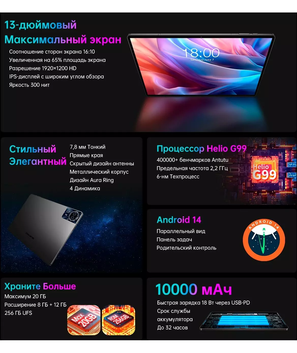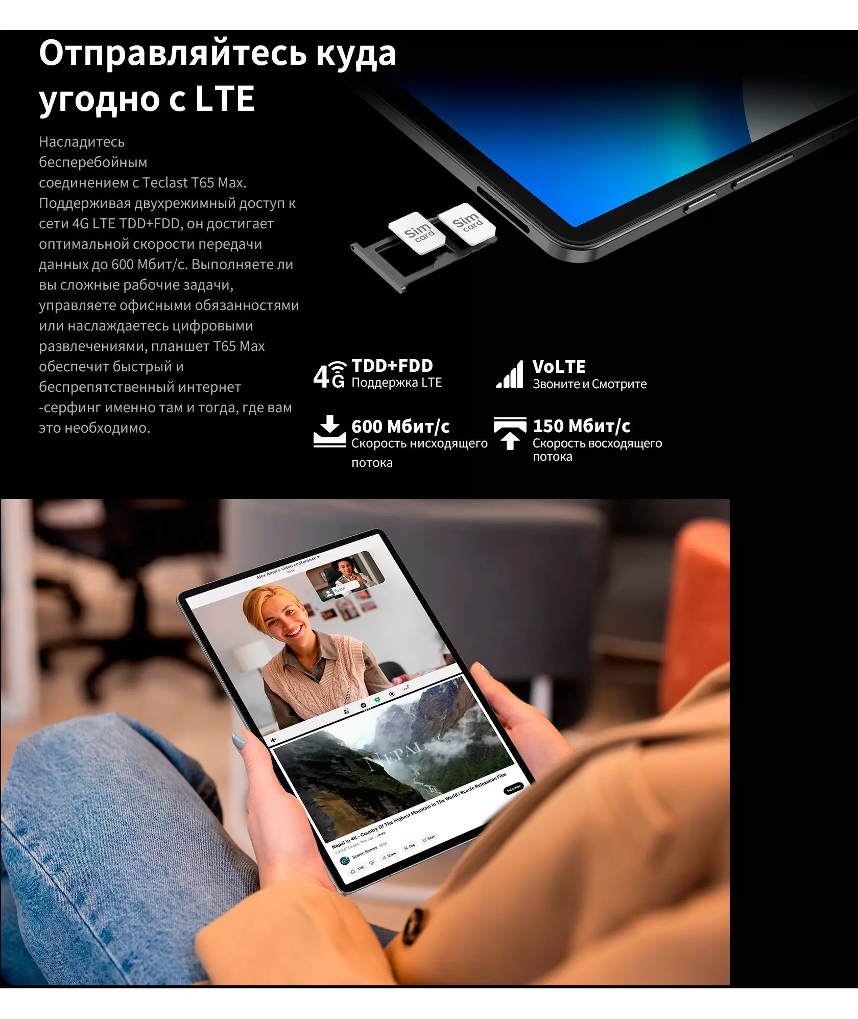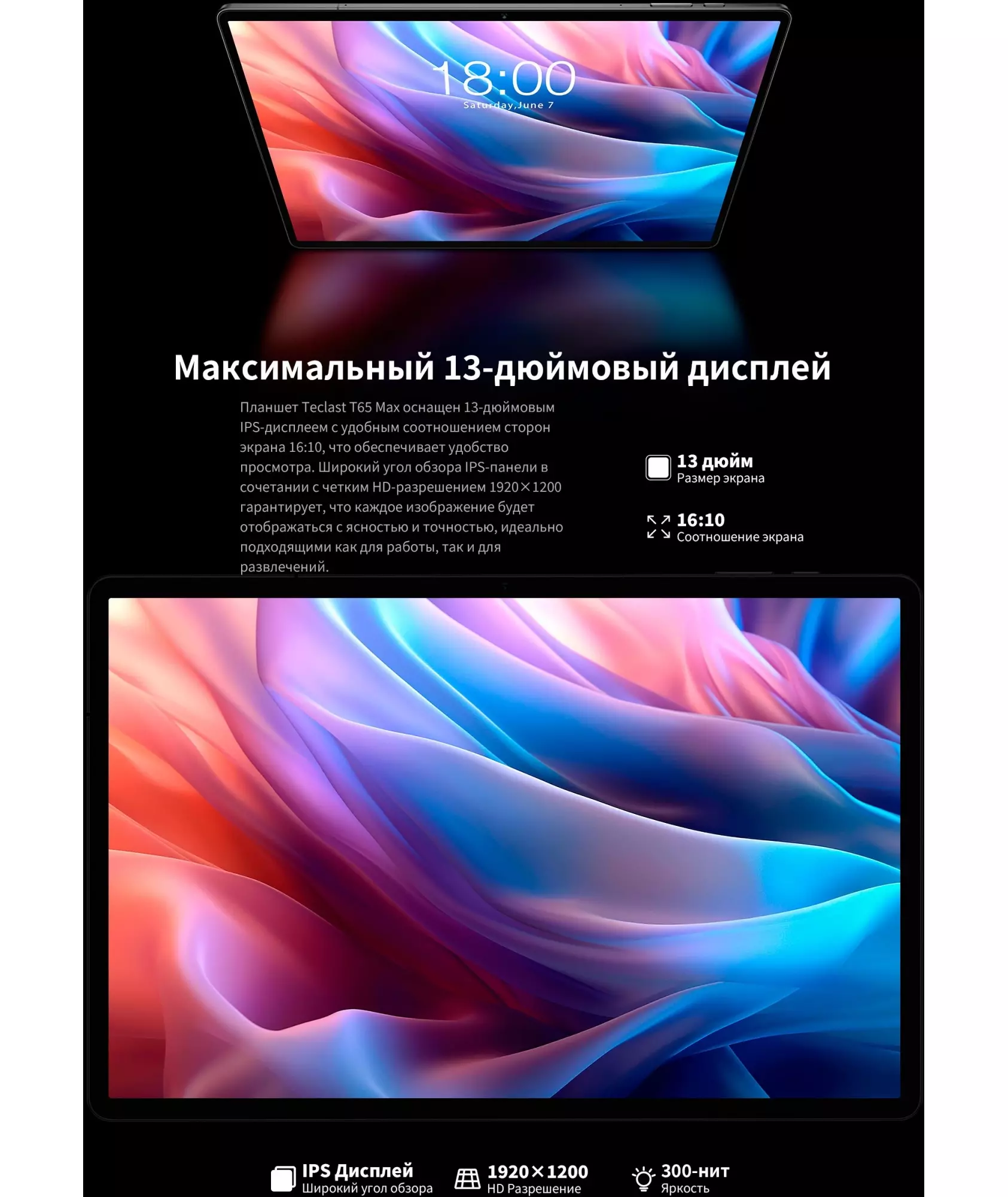 Описание Teclast T65Max G99 LTE 8Gb/256Gb серебристый