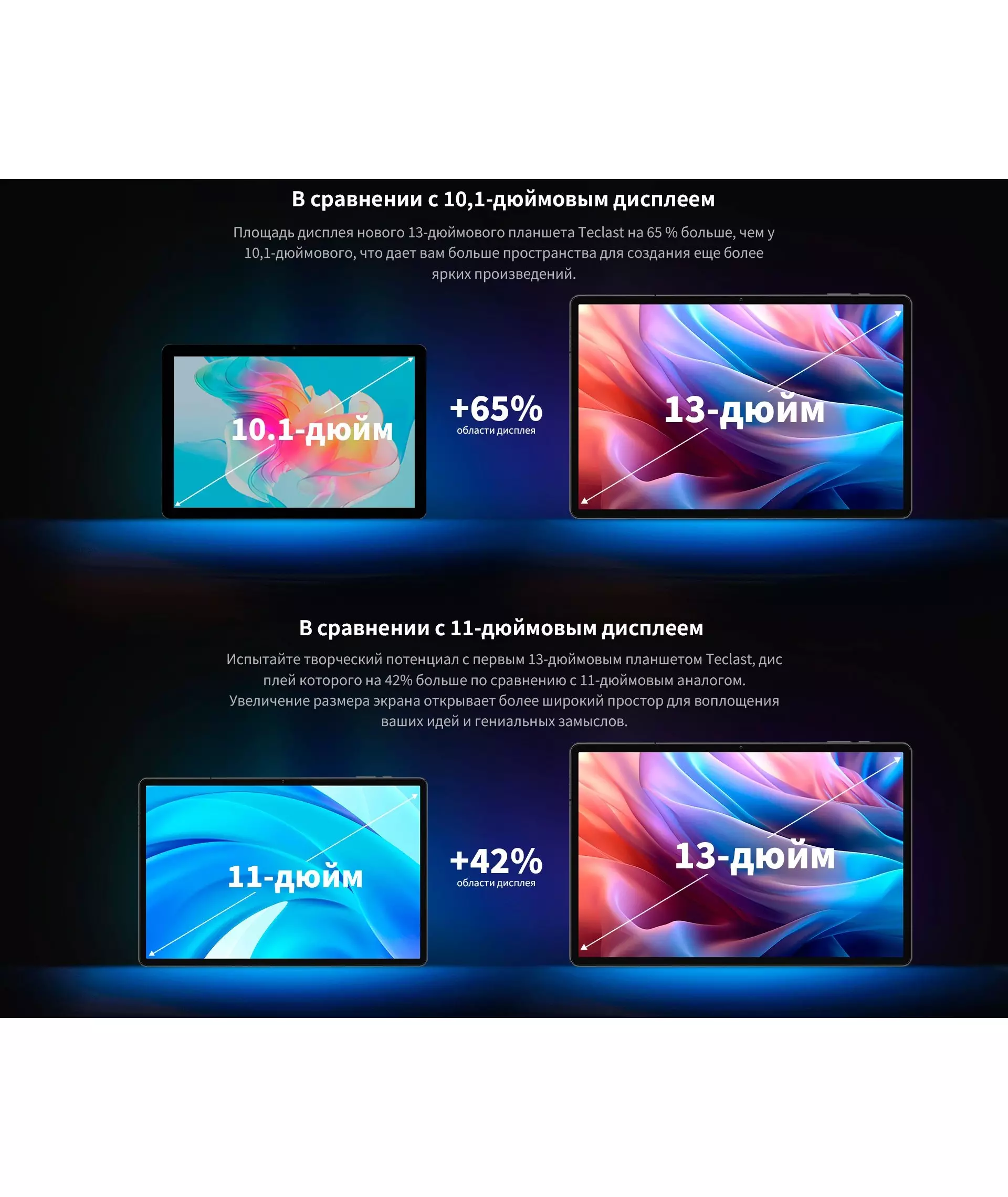 Планшет Teclast T65Max G99 LTE 8Gb/256Gb серебристый 12.95", 1920x1200, IPS, Android 14, 2Sim, BT, GPS, Touch, microSD 1Tb