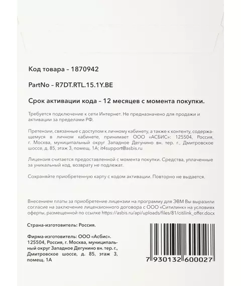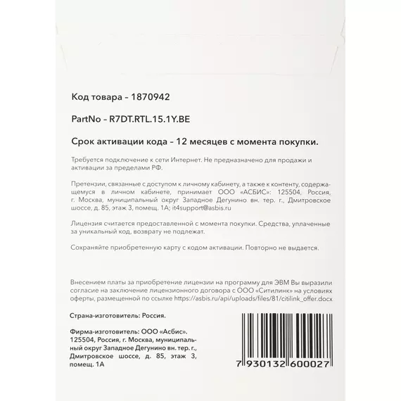 Наличие товара Р7-Офис Для Малого бизнеса [R7DT.RTL.15.1Y.BE]