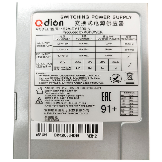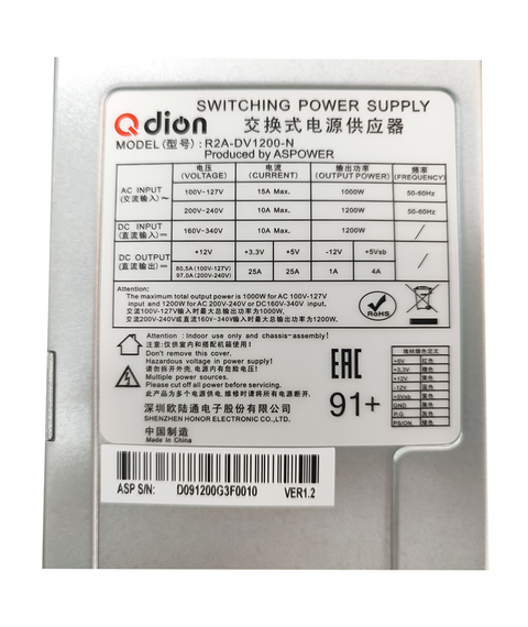 Блок питания серверный Q-Dion R2A-DV1200-N 2U Redundant 1200W Efficiency 91+, Cable connector: C14 [99RADV1200I1170310]
