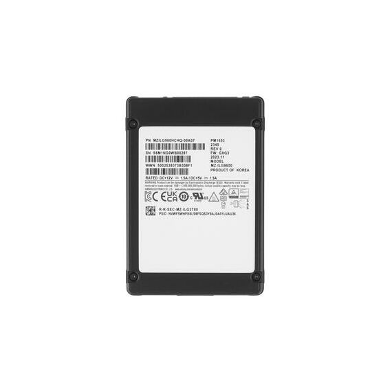 Твердотельный накопитель Samsung 960GB PM1653 2.5" 15mm, SAS 24Gb/s, 3D TLC, R/W 4200/up 3800MB/s, IOPs 600 000/55 000, TBW 1752, DWPD 1 [MZILG960HCHQ-00A07]