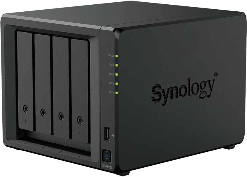Система хранения данных Synology DS925+ QC 2.2GhzCPU/4Gb(32)/RAID0,1,10,5,6/4HP HDD SATA(3.5, 2.5) upto 9hp HDD (1xDX525)/2xM.2 NVMe/2xUSB3.2/2x2.5GbE/iSCSI/1xPS/1YW repl DS923+