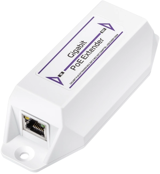 Компактный сетевой гигабитный удлинитель РоЕ/РоЕ+ для увеличения до 100м дистанции передачи питания и данных через Ethernet-кабель с поддержкой 10/100/1000 Мбит/сек.