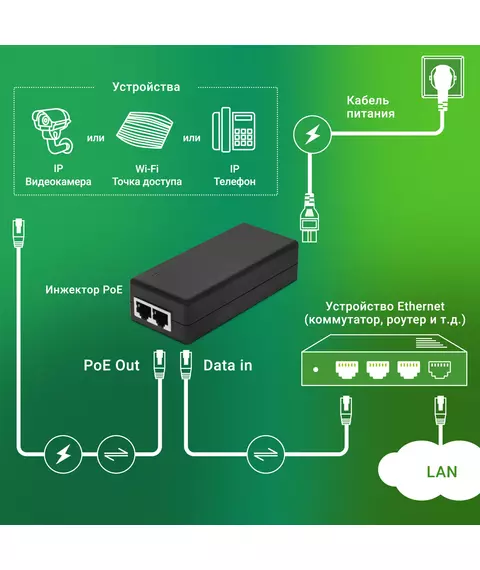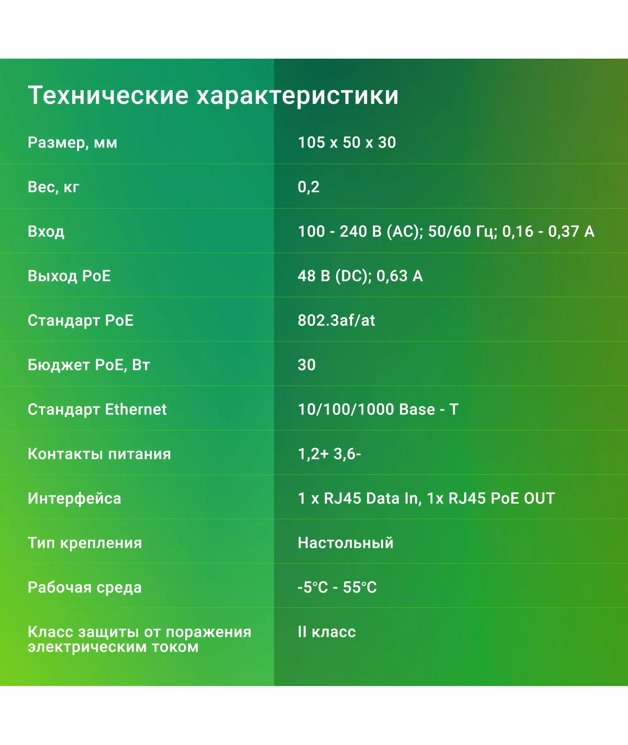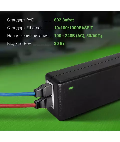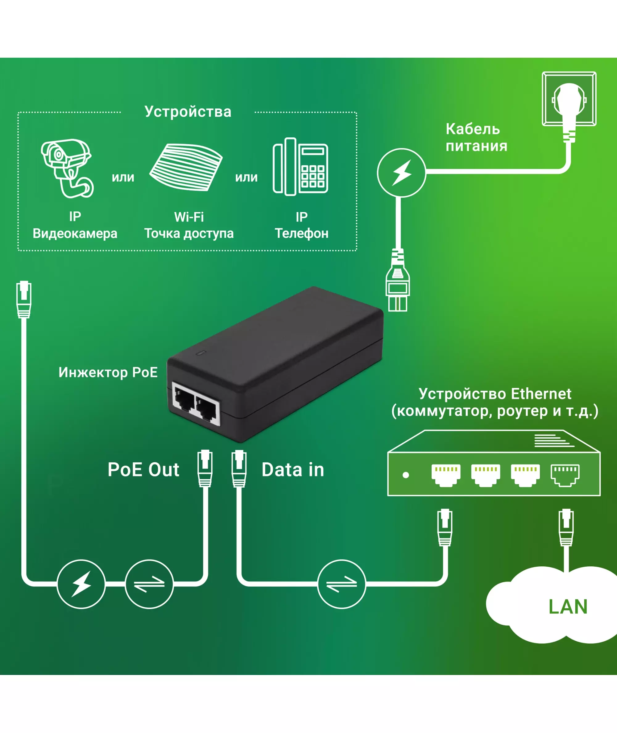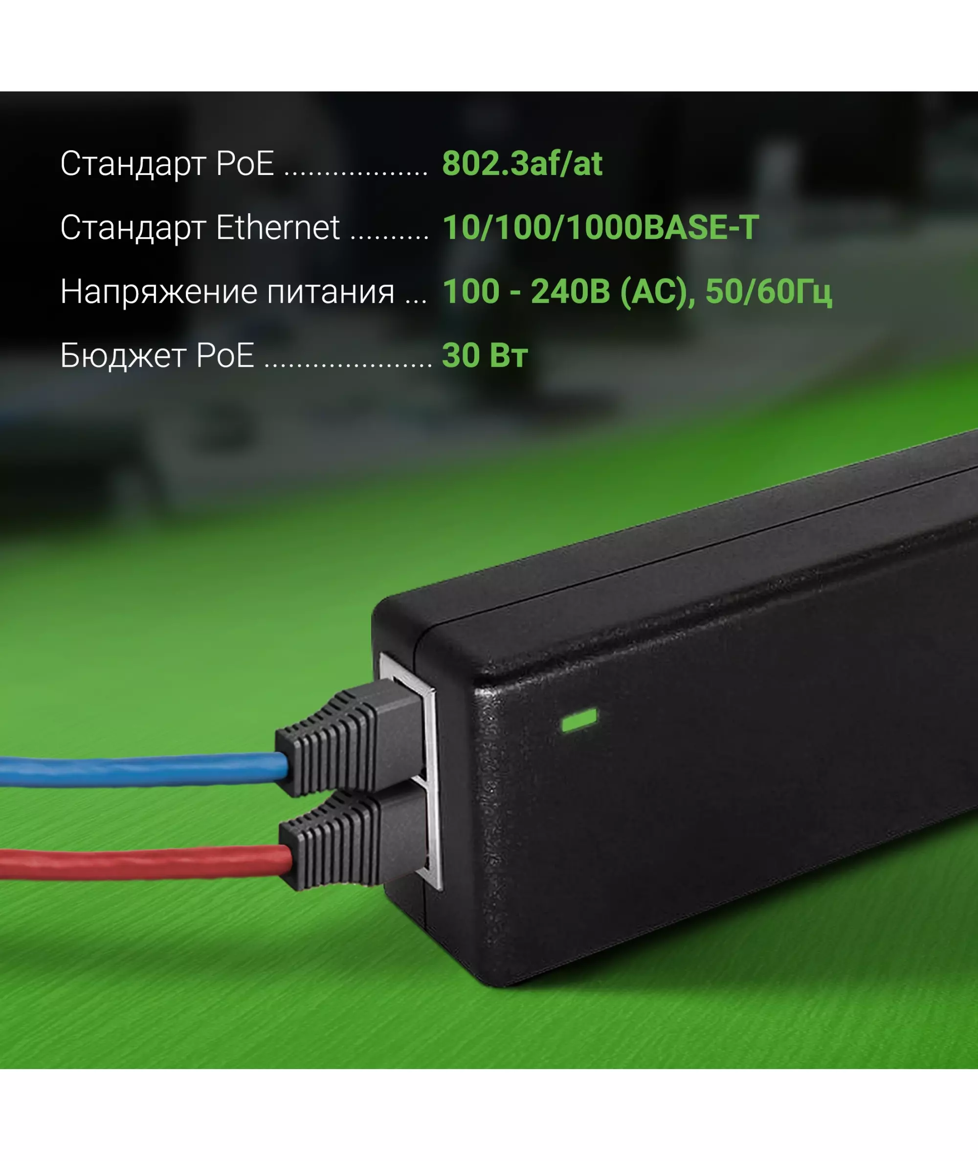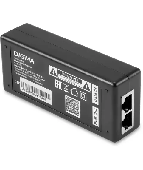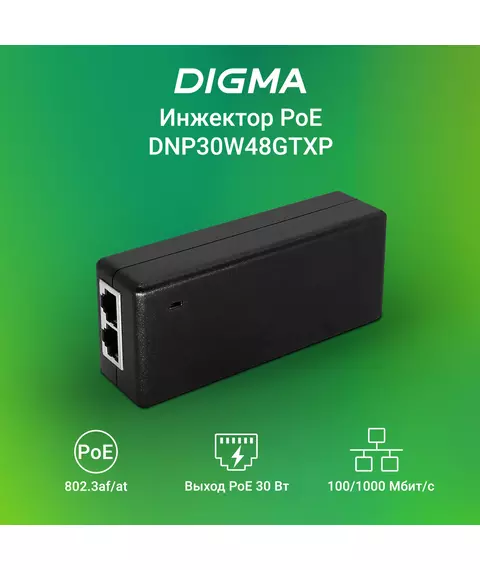 Инжектор PoE Digma DNP30W48GTXP 10/100/1000BASE-T, 30Вт, 100-240В(АС)