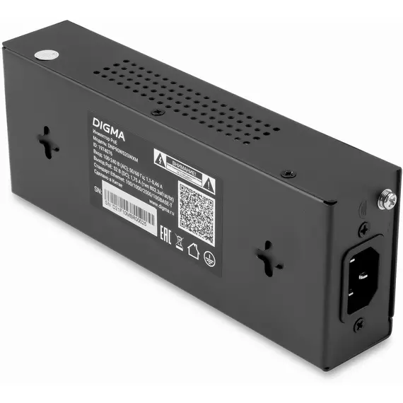 Digma DNP90W52GWXM – мощный и надежный PoE-инжектор, который позволит передавать подключенным устройствам электропитание и данные по одному Ethernet-кабелю.