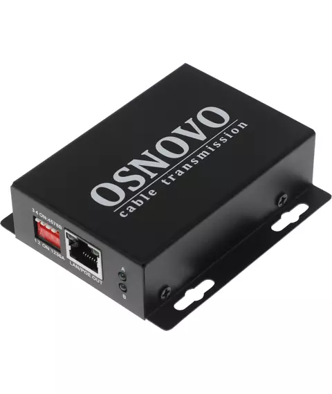 PoE-удлинитель Osnovo E-PoE/1A оснащен двумя портами RJ-45 (вход/выход) с поддержкой РоЕ. Увеличивает расстояние передачи данных и питания по витой паре Cat5e или Cat6 до 150 м на 100 Мбит/с, до 250 м — на 10 Мбит/с.