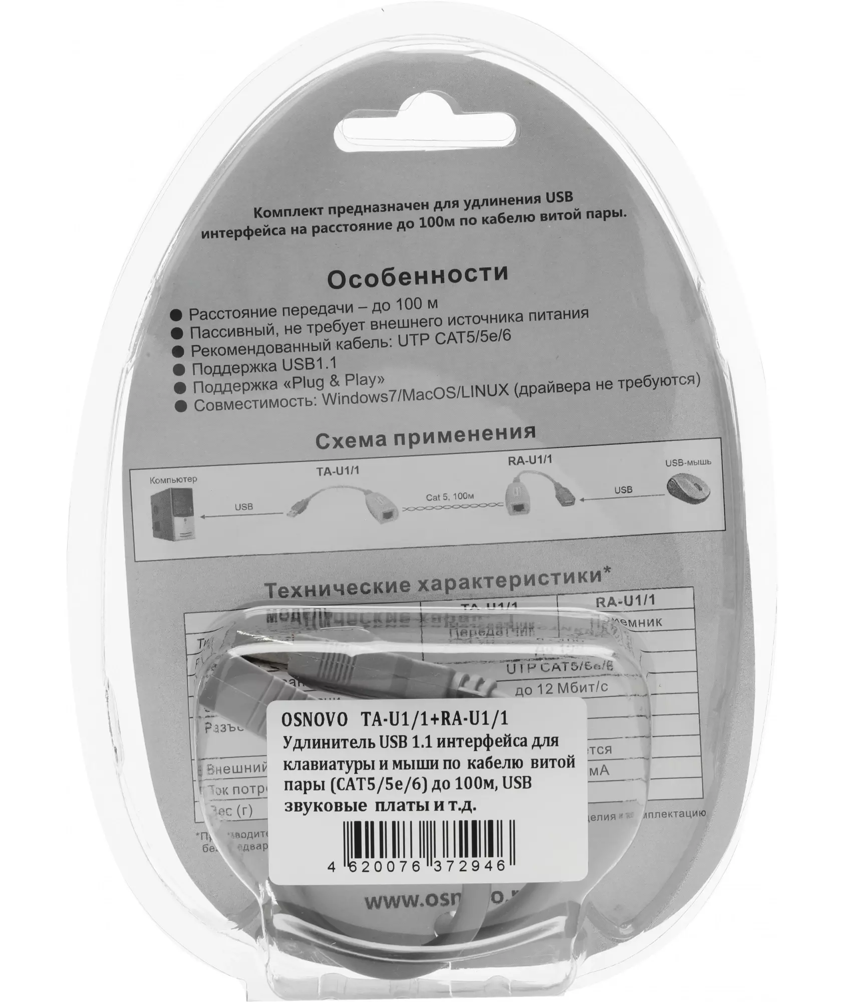 Описание Osnovo TA-U1/1+RA-U1/1