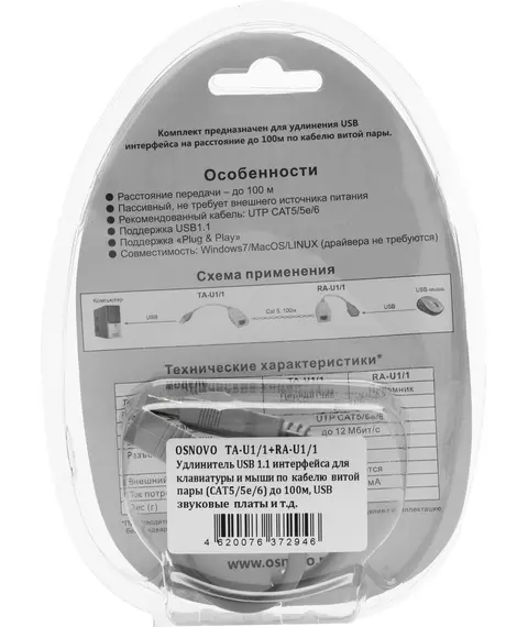 Удлинитель Osnovo TA-U1/1+RA-U1/1