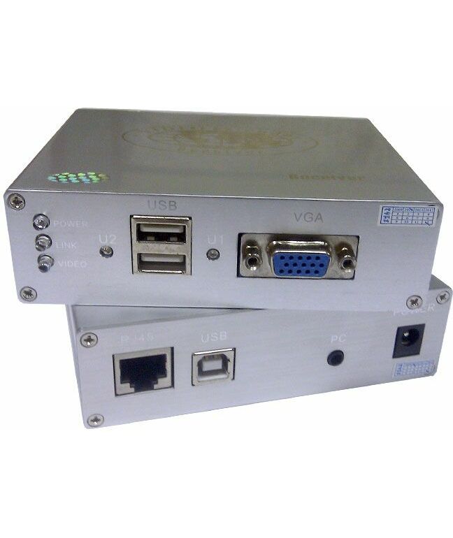 | Особенности | Разъемы: RJ-45 (для подключения приемника к передатчику), 2 х USB (для подключения клавиатуры и мыши), 15-Pin (VGA). Используется с устройствами на базе ОС Windows, с DVR Standalone на базе OC Linux; БП DC9V/1A- 2 шт (в комплекте); передатчик-130х100х30 мм, приемник -130х100х30 мм. 0... +55 С. |