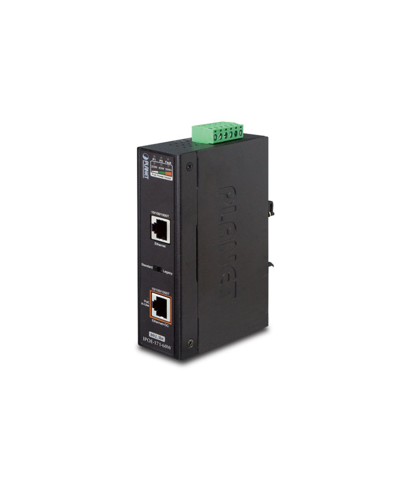Индустриальный PoE инжектор Planet IPOE-171-60W IP30, Industrial Single-Port 10/100/1000Mbps 802.3bt PoE++ Injector (60 Watts, Legacy mode support, PoE Usage LED, -40 to 75 C