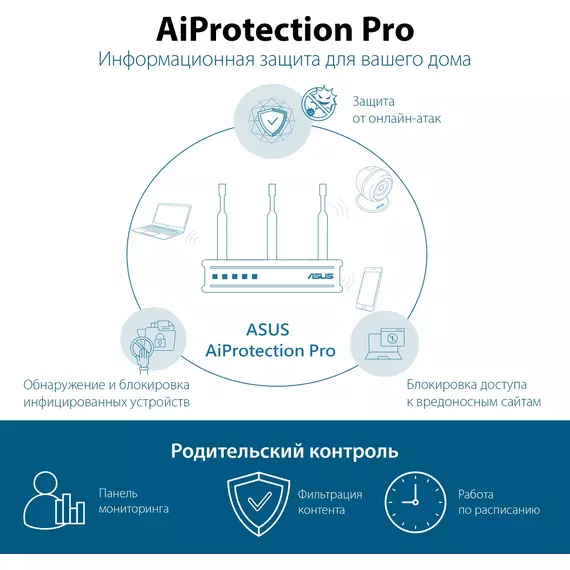 | Средства защиты сети | DMZ, DoS, Firewall, NAT, SPI, гостевая сеть, родительский контроль |