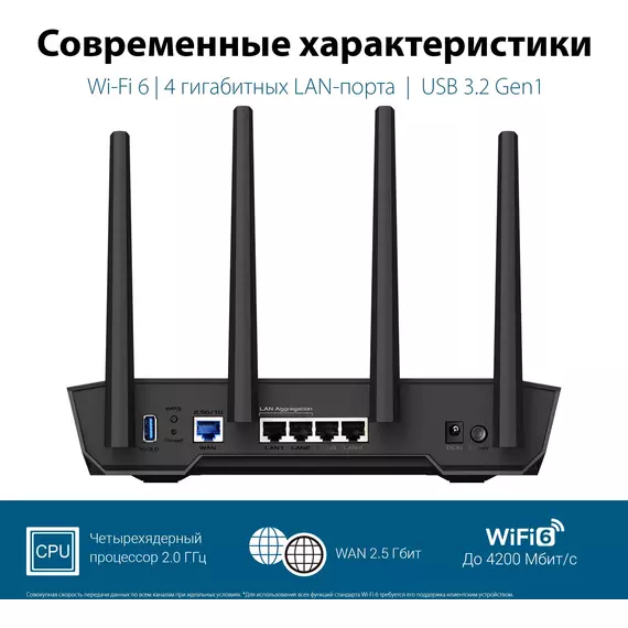 | Поддержка технологий | Beamforming, DHCP-сервер, DLNA, Dynamic DNS (DDNS), FTP-сервер, MESH, QoS, UPnP, VPN, WPS, поддержка IPTV, протокол IPv6 |