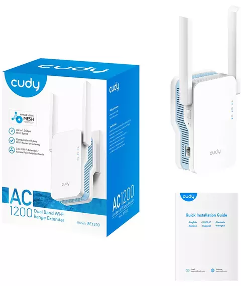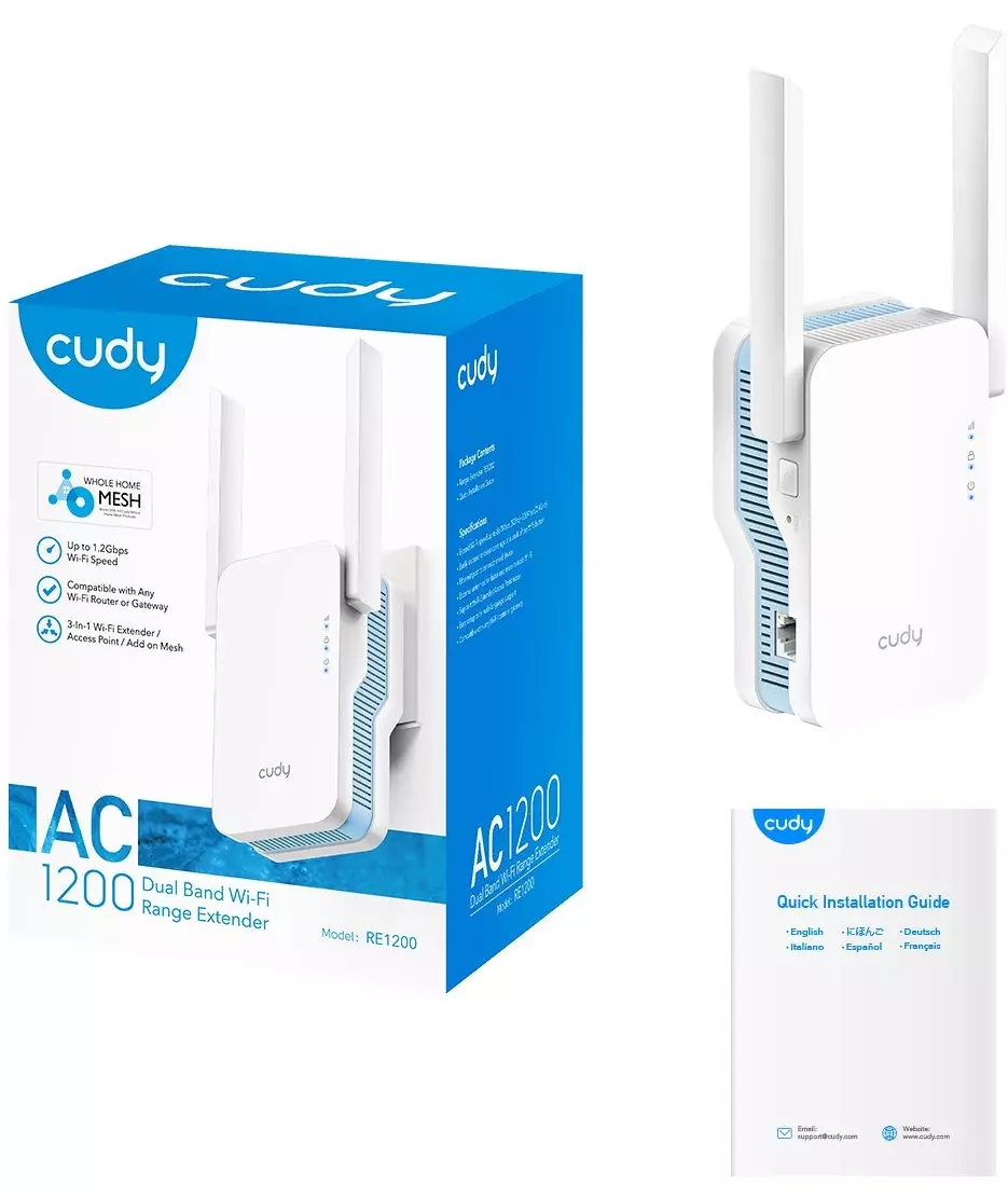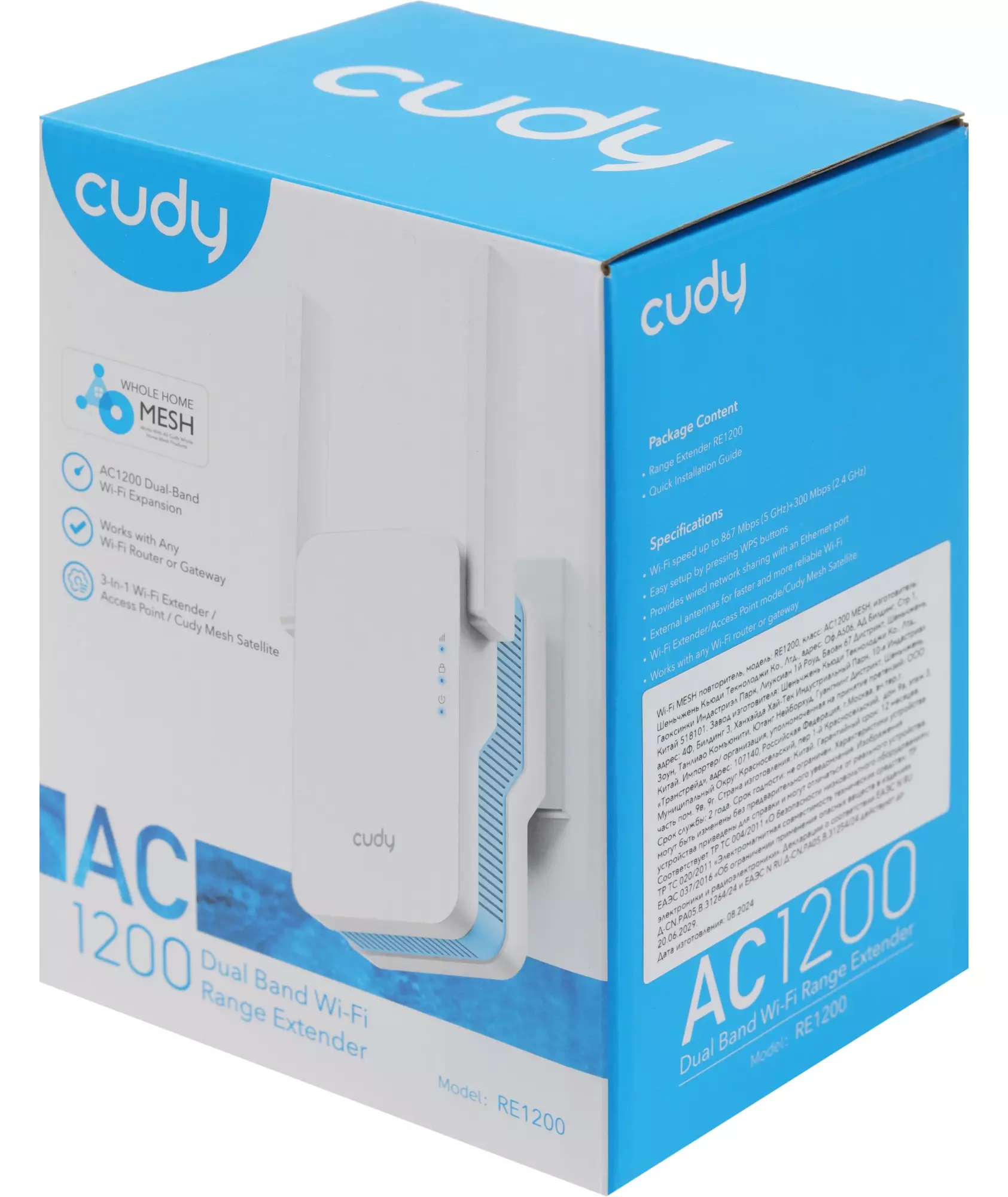 Повторитель беспроводного сигнала Cudy RE1200 AC1200 10/100BASE-TX/Wi-Fi белый