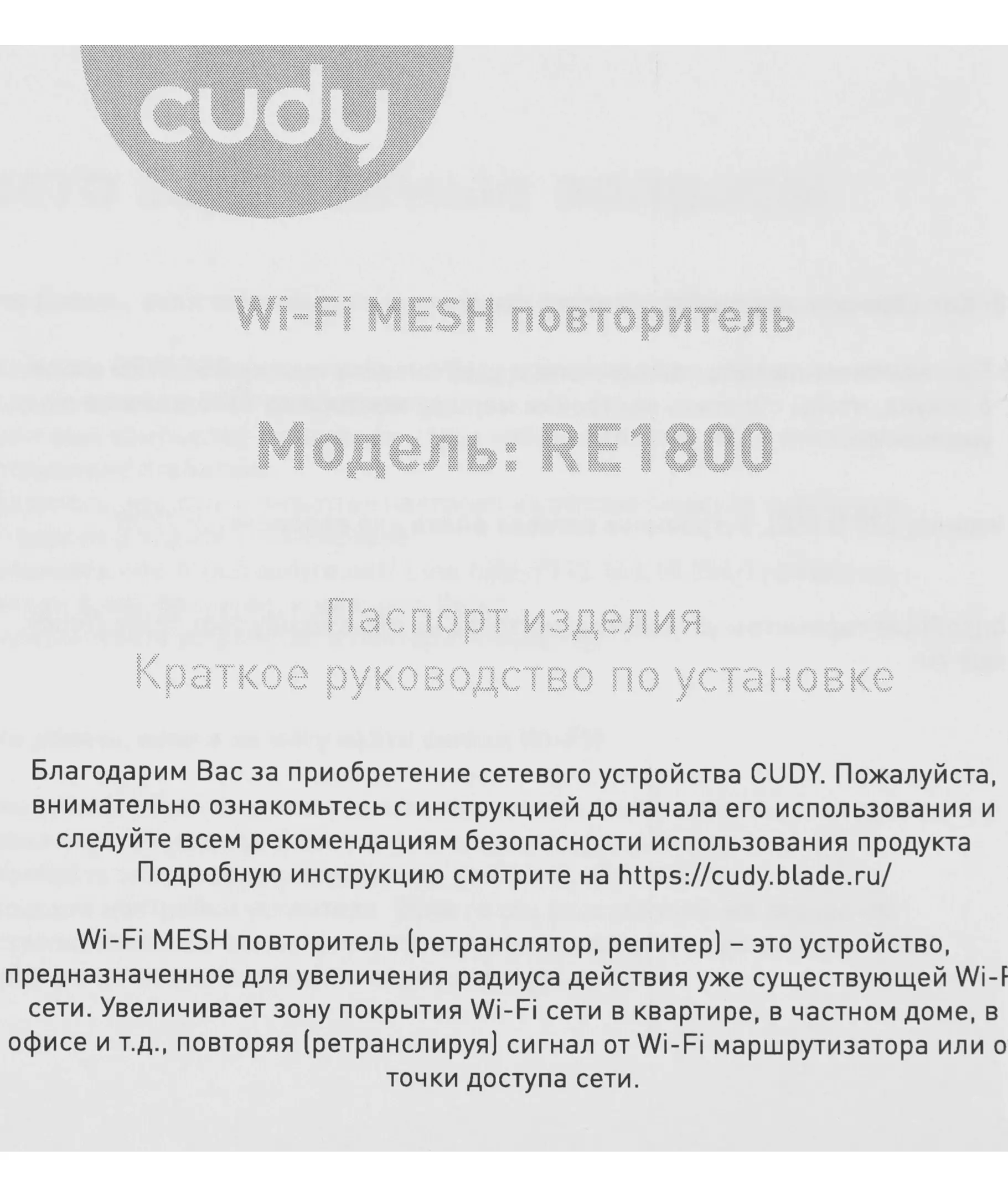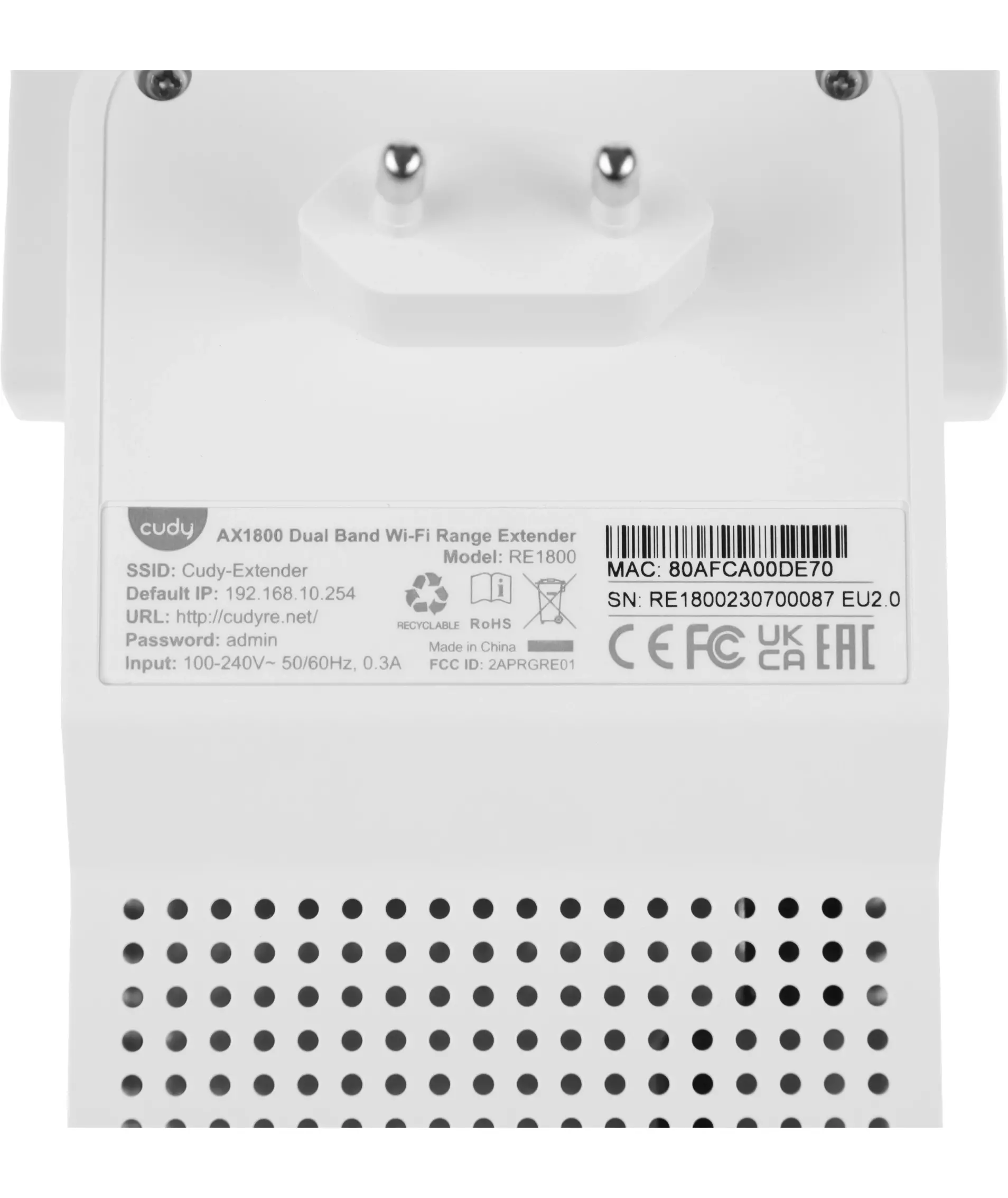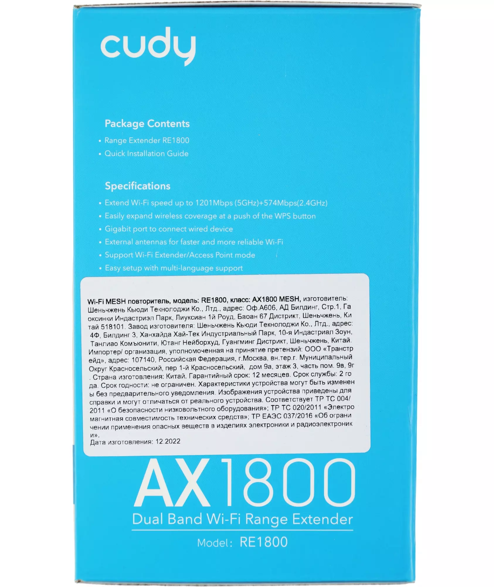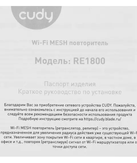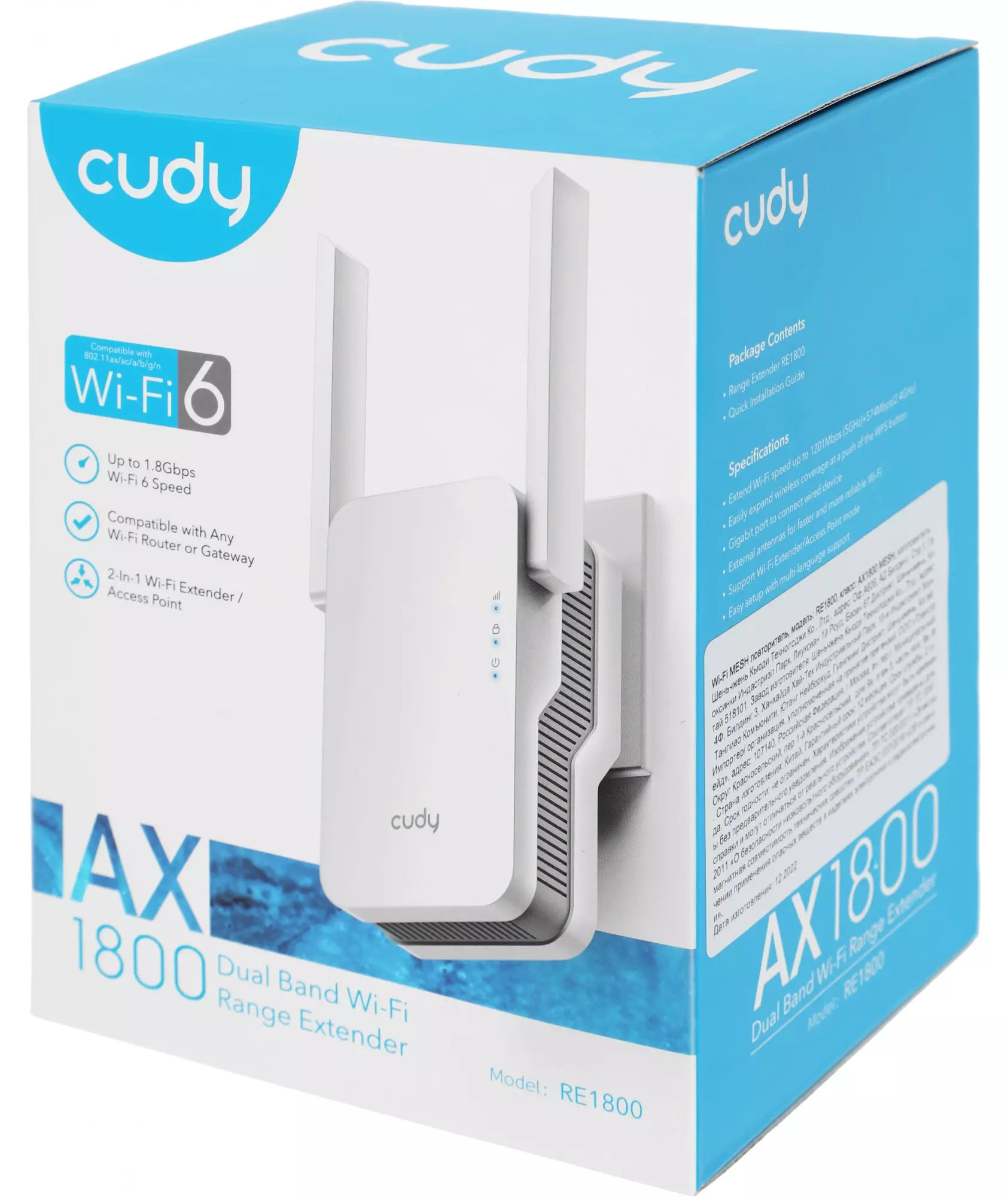 Повторитель беспроводного сигнала Cudy RE1800 AX1800 10/100/1000BASE-TX/Wi-Fi белый