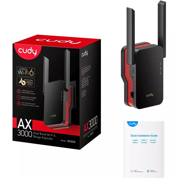 Повторитель беспроводного сигнала Cudy RE3000 AX3000 Wi-Fi черный