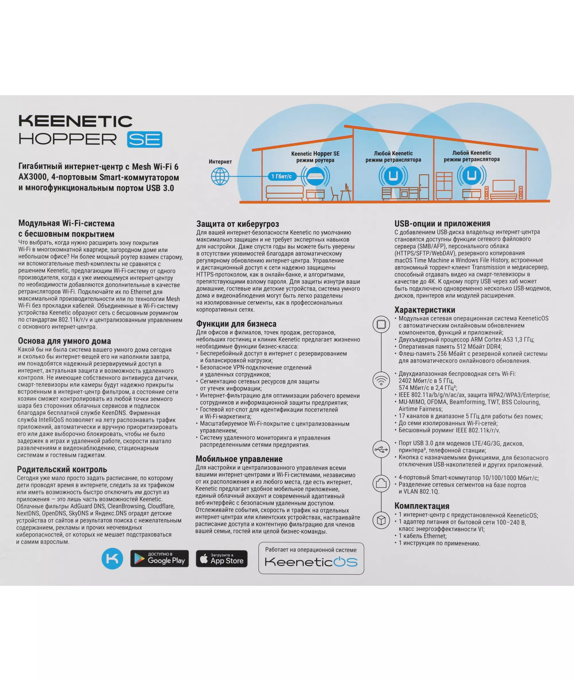 Роутер беспроводной Keenetic KN-3812 Hopper SE AX3000 10/100/1000BASE-TX/4G ready белый