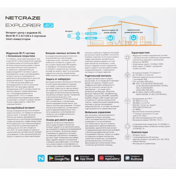 | Комплектация | Устройство, 4G-антенны, адаптер питания: 12 В 1 A, кабель Ethernet, инструкция по применению. |