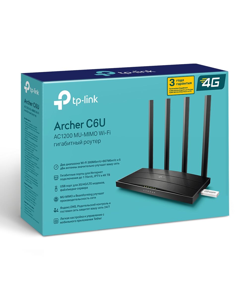 Маршрутизатор TP-Link Archer C6U MU-MIMO Wi-Fi Gigabit Router, 4UTP 1000Mbps, 1WAN, 802.11b/g/n/ac, 867Mbps