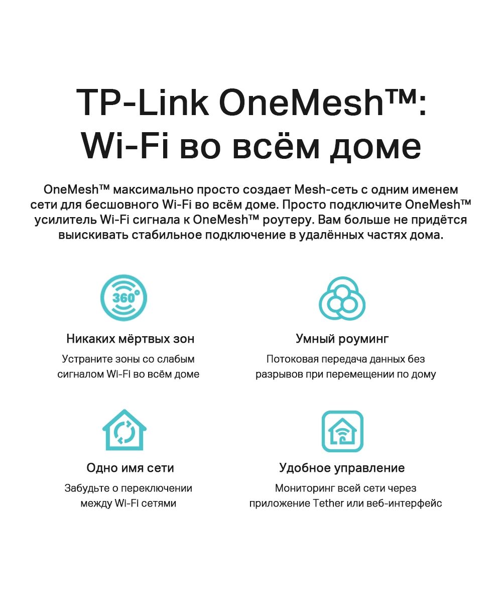 - Поддержка OneMesh — используйте усилители OneMesh, чтобы создать покрытие во всём доме и не терять сигнал при перемещении.