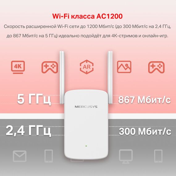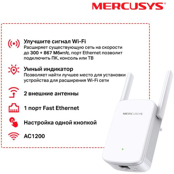 Повторитель беспроводного сигнала Mercusys ME30 AC1200 10/100BASE-TX белый