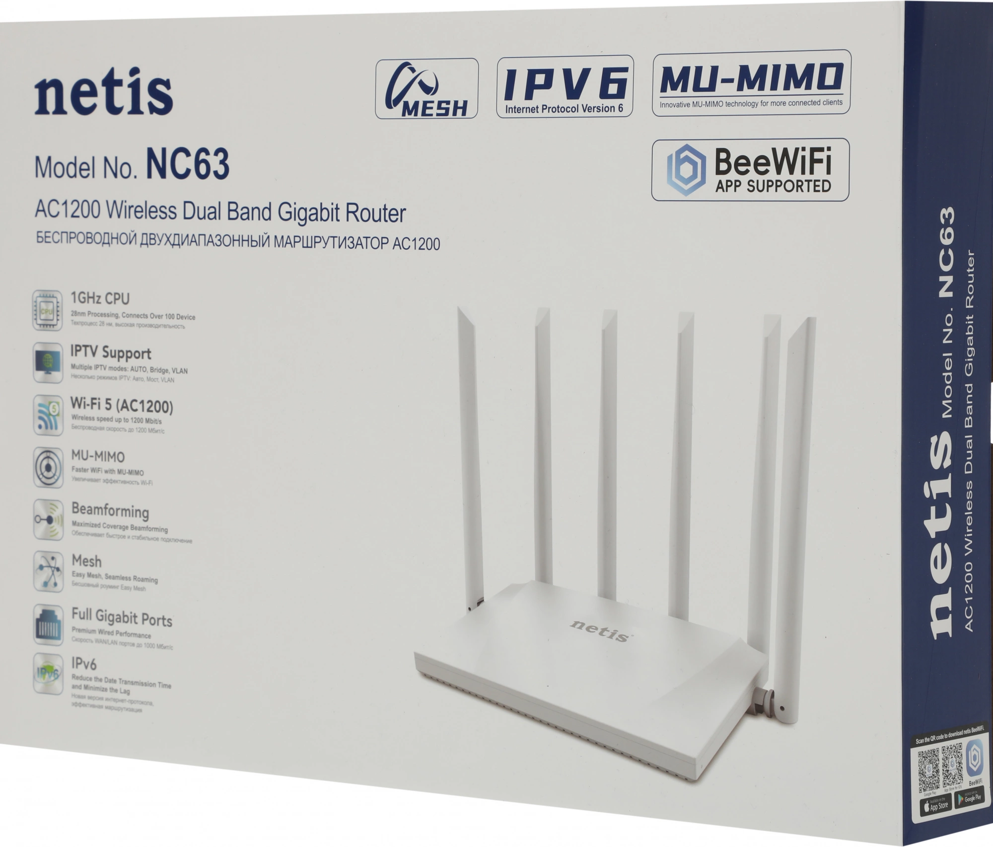 Роутер беспроводной netis NC63 AC1200 10/100/1000BASE-TX белый