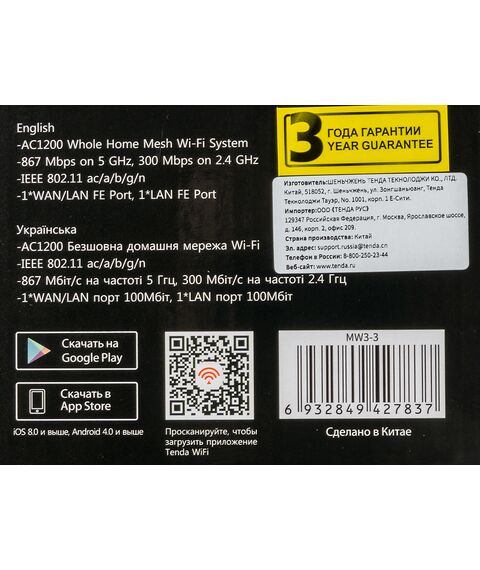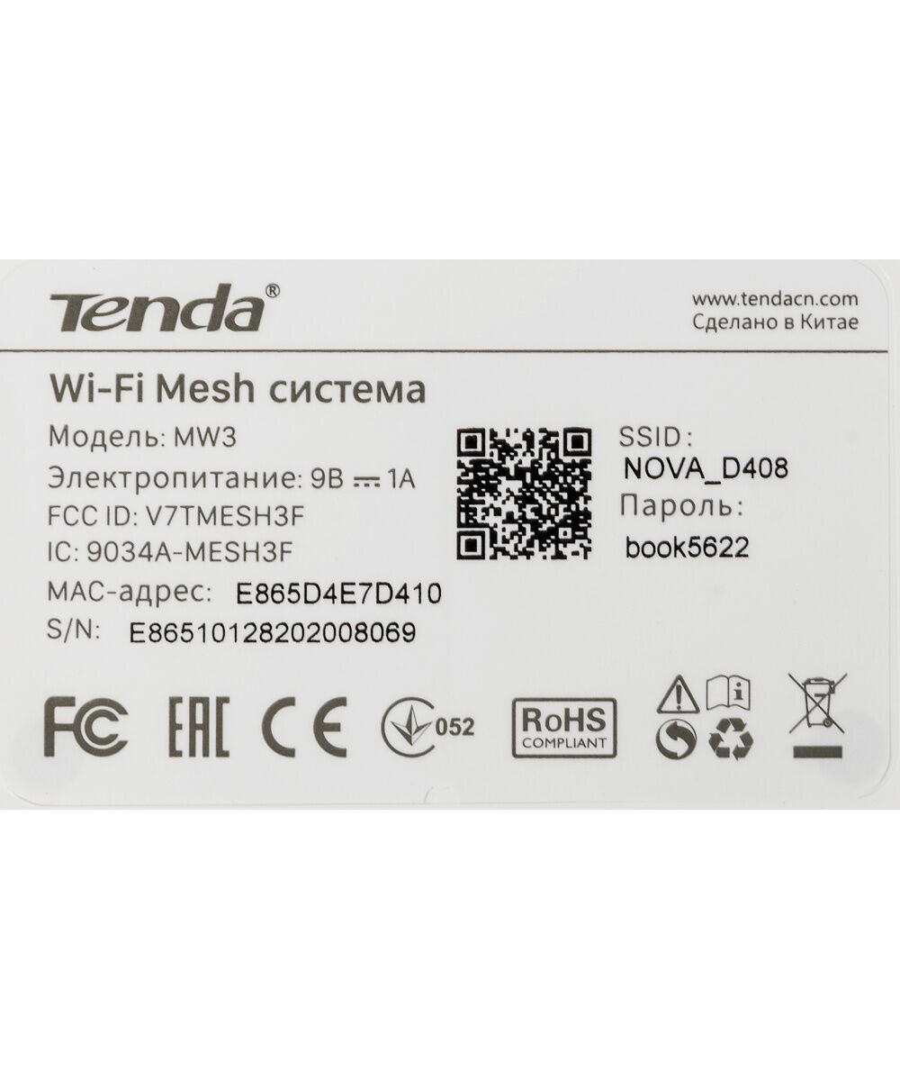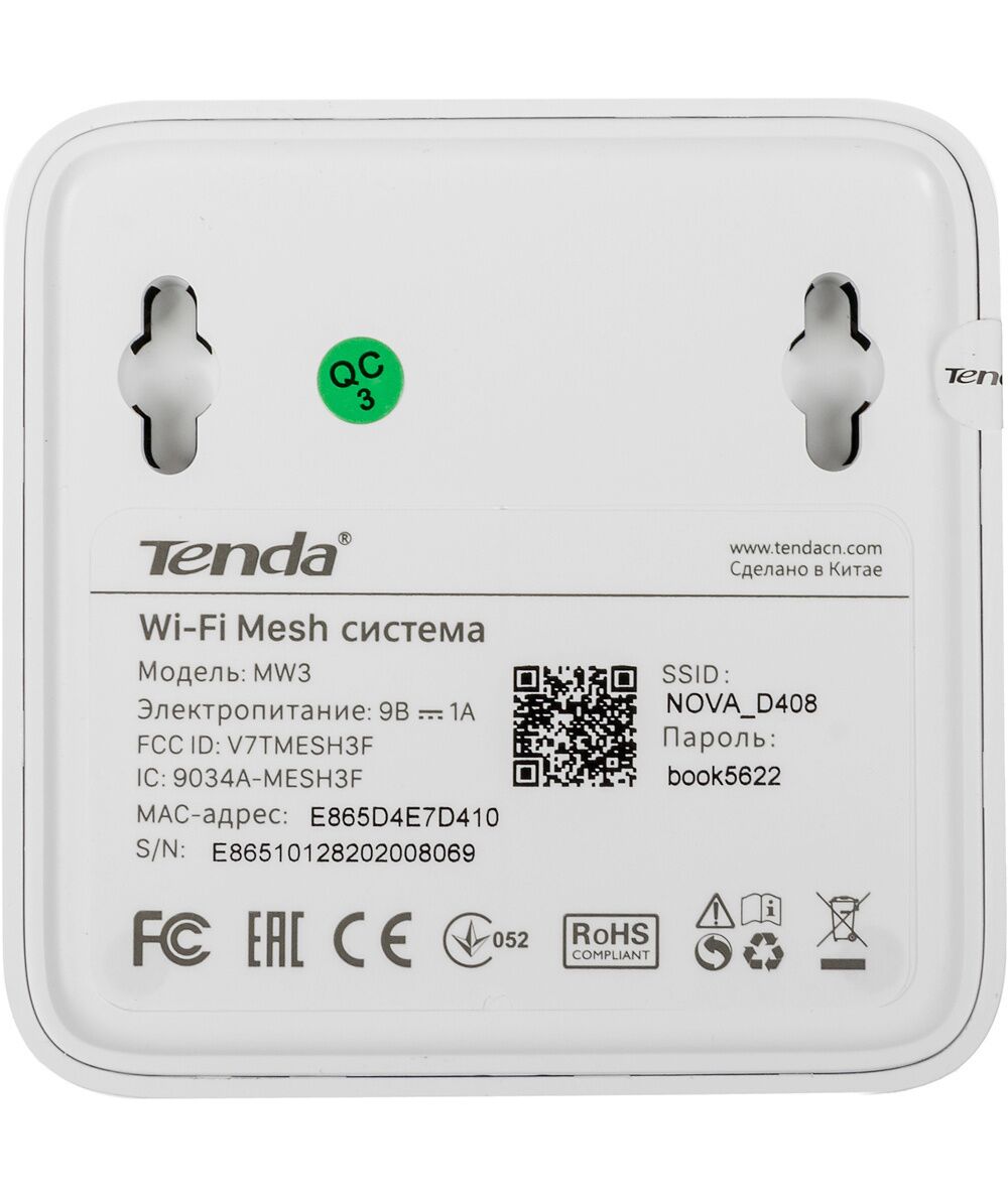 Роутер беспроводной TENDA MW3(3-PACK) AC1200 10/100BASE-TX белый