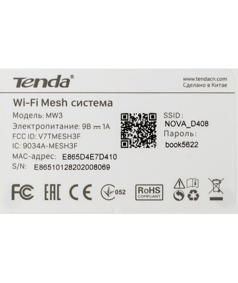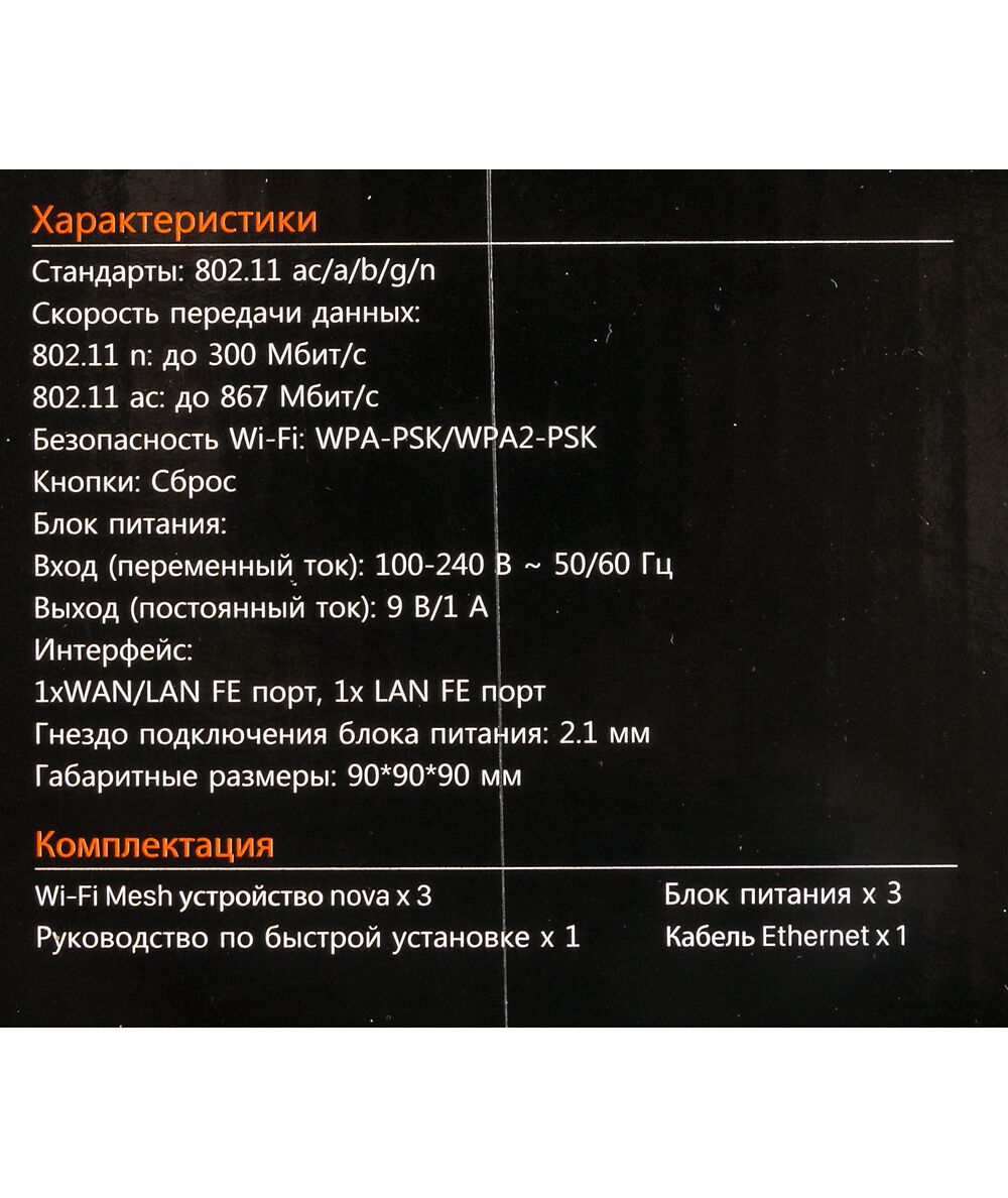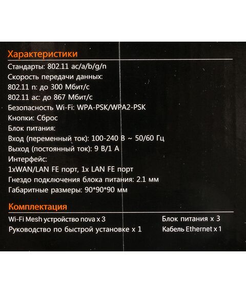 | Комплектация | Mesh система - 3 шт., адаптер питания - 3 шт., Ethernet кабель, документация. |