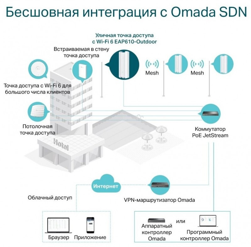 - Бесшовный роуминг: Omada Mesh