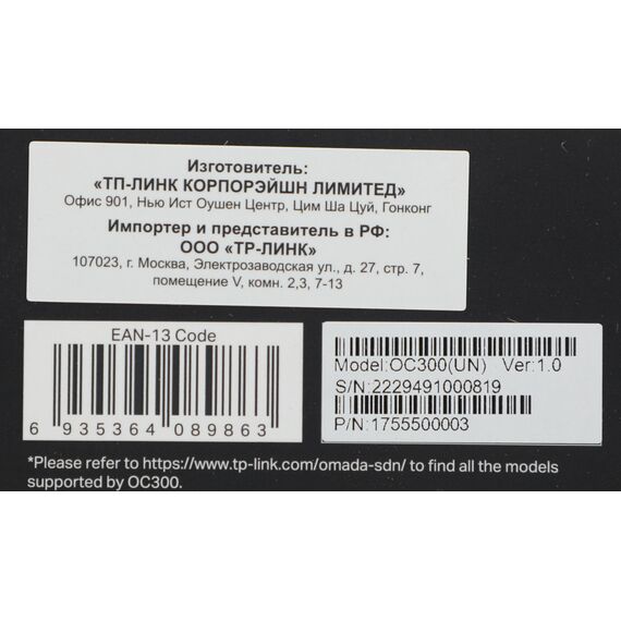 Контроллер точек доступа TP-Link OC300 Omada 10/100/1000BASE-TX черный