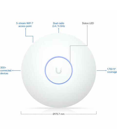 Точка доступа Wi-Fi Ubiquiti U7-LR UniFi 7 AP Long Range, 2.4+5 ГГц, Wi-Fi 7, 3х3 MU-MIMO, 802.3af, 1х 2.5G RJ45