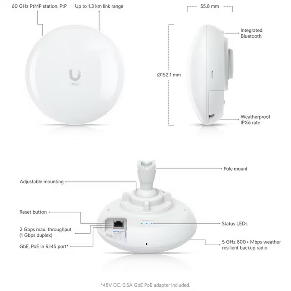 | Поддерживаемые частоты | 5 ГГц (5.15-5.35 / 5.65-5.85 ГГц), 60 ГГц (57-66 ГГц) |