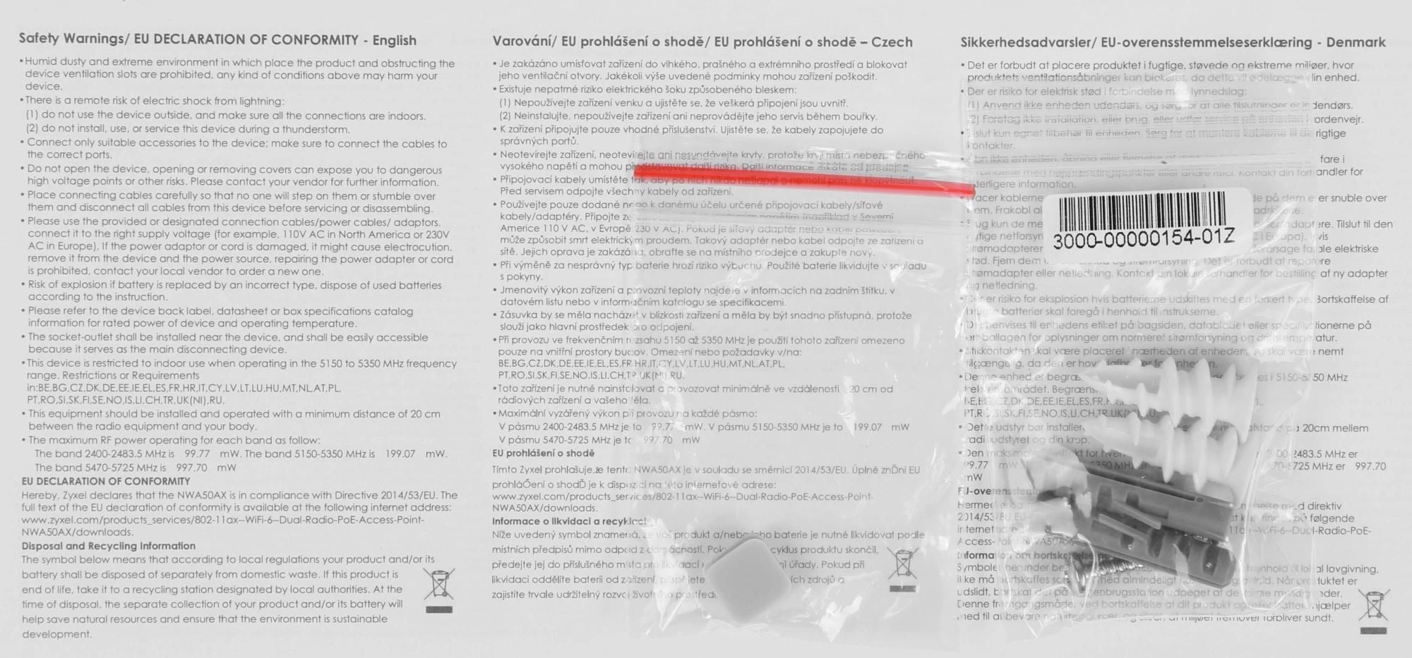 | Особенности | Быстрый роуминг 802.11r/k/v, WPA3, Band Steering, IEEE 802.1X, RADIUS, фильтр помех от 3G/4G/5G сетей. Поддерживает удаленное управление через облако Zyxel Nebula (nebula.zyxel.com). |