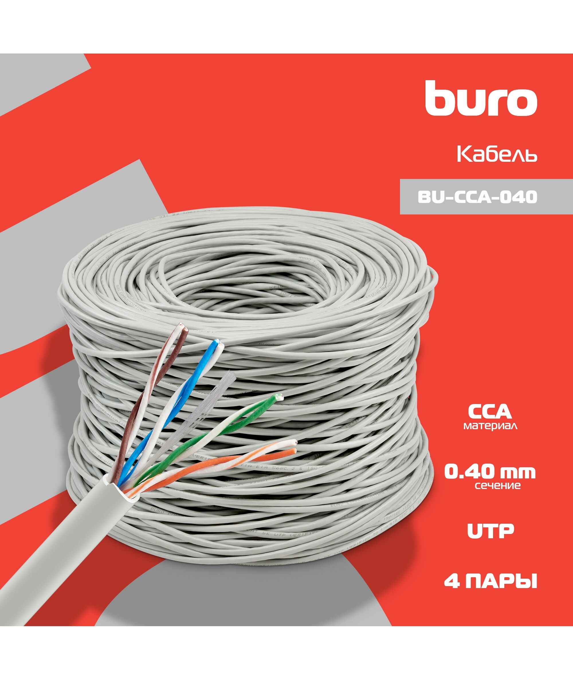 Кабель сетевой BURO BU-CCA-040 UTP 4 пары cat.5E solid 0.40мм CCA 305м серый