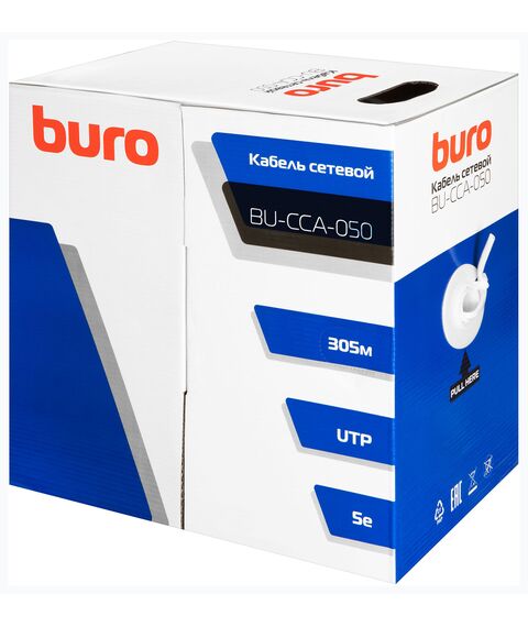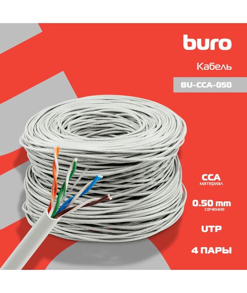 Кабель сетевой BURO BU-CCA-050 UTP 4 пары cat.5E solid 0.50мм CCA 305м серый