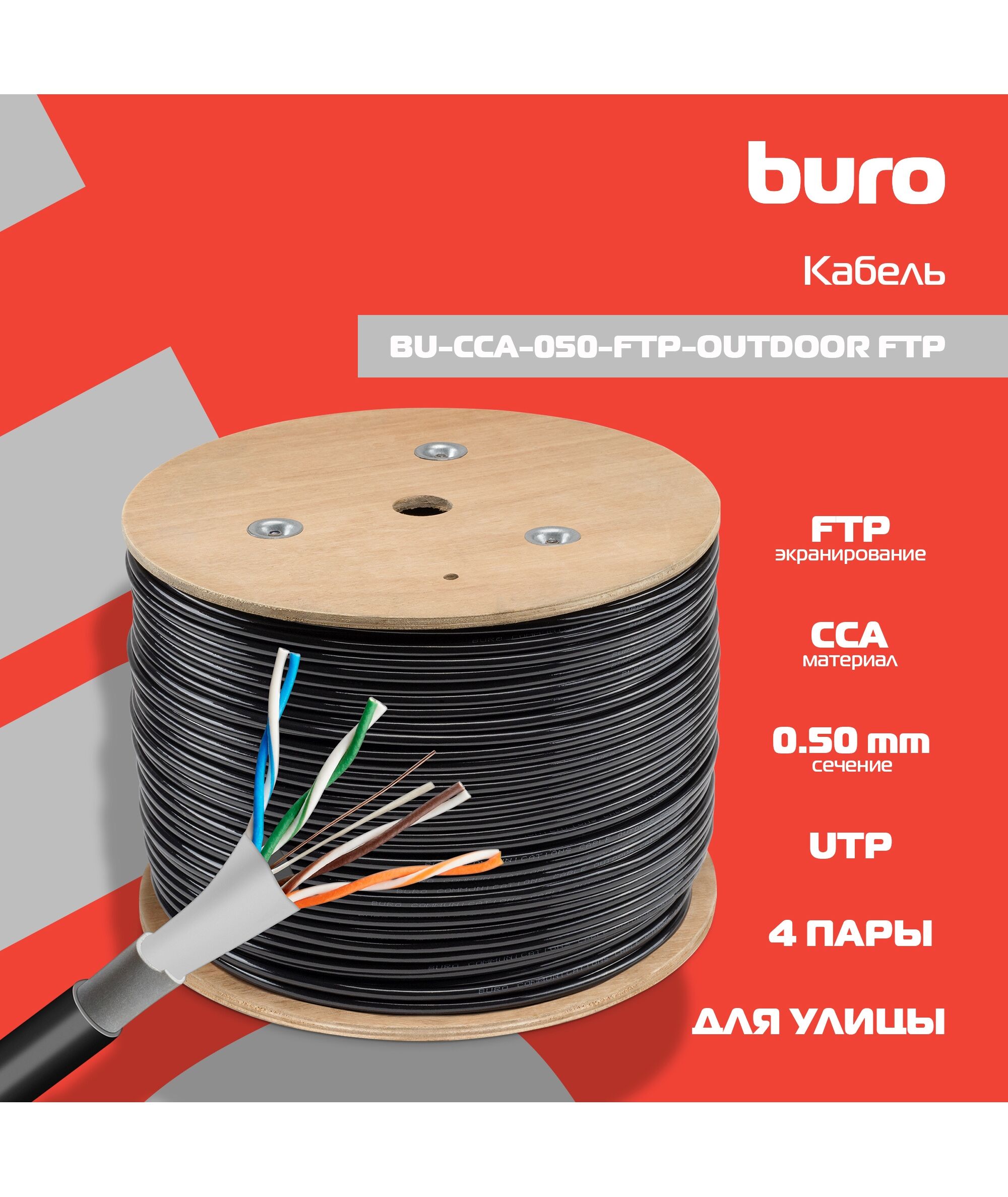 Кабель сетевой BURO BU-CCA-050-FTP-OUTDOOR FTP 4 пары solid 0.5мм CCA 305м черный outdoor