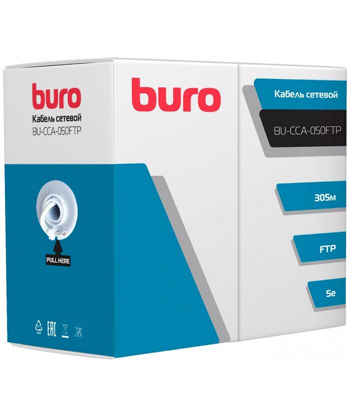 Кабель сетевой BURO BU-CCA-050FTP FTP 4 пары cat.5E solid 0.50мм CCA 305м серый