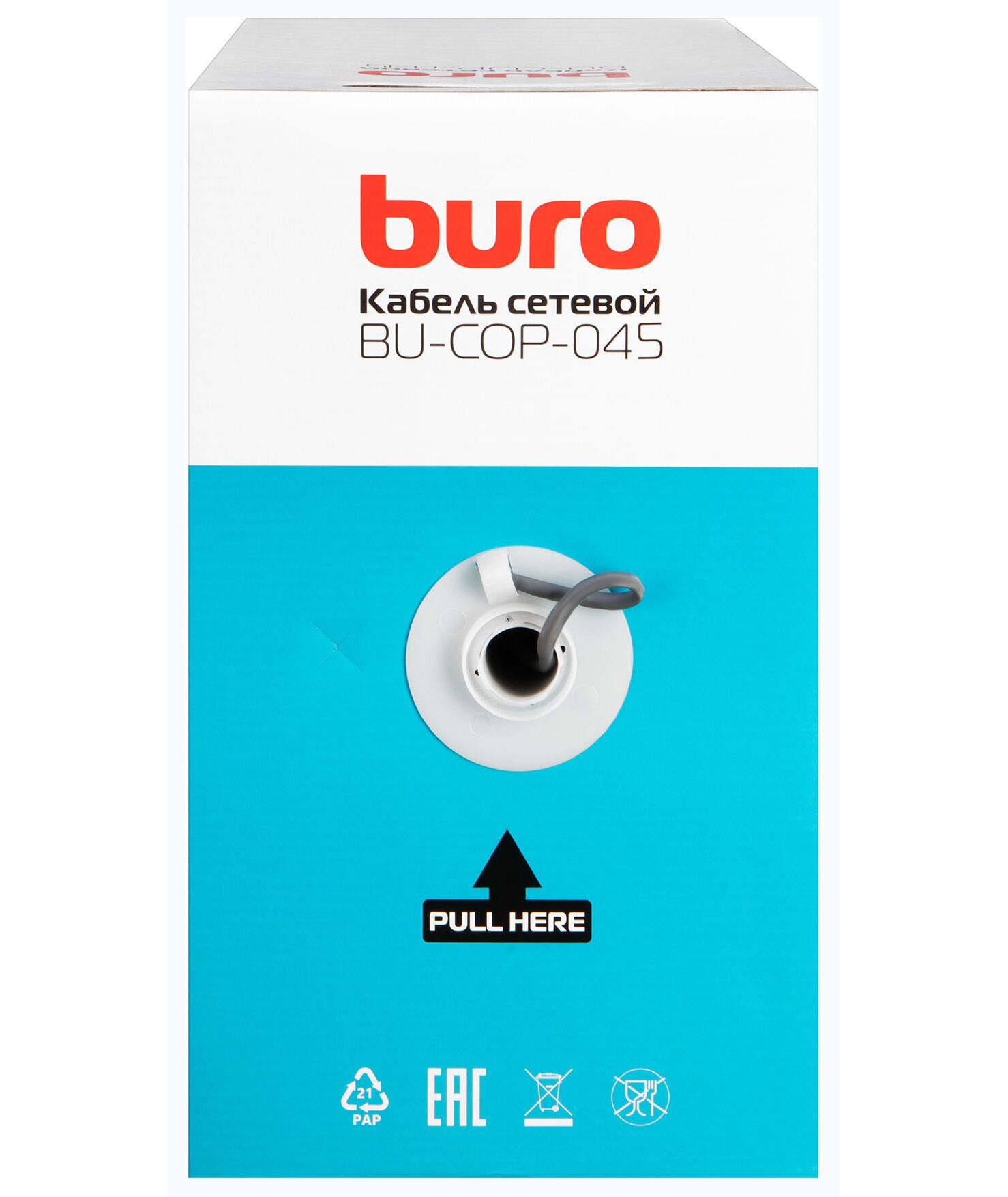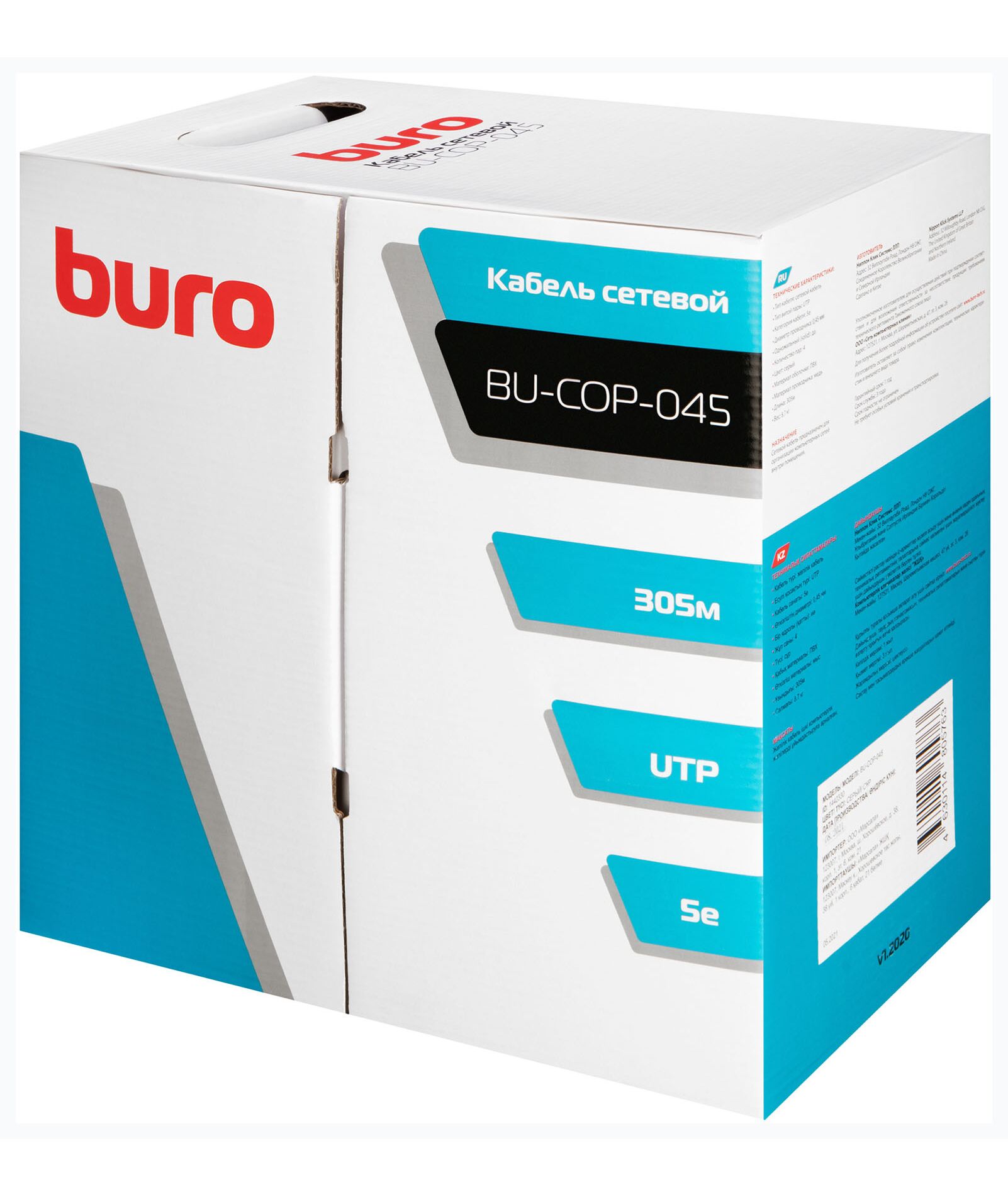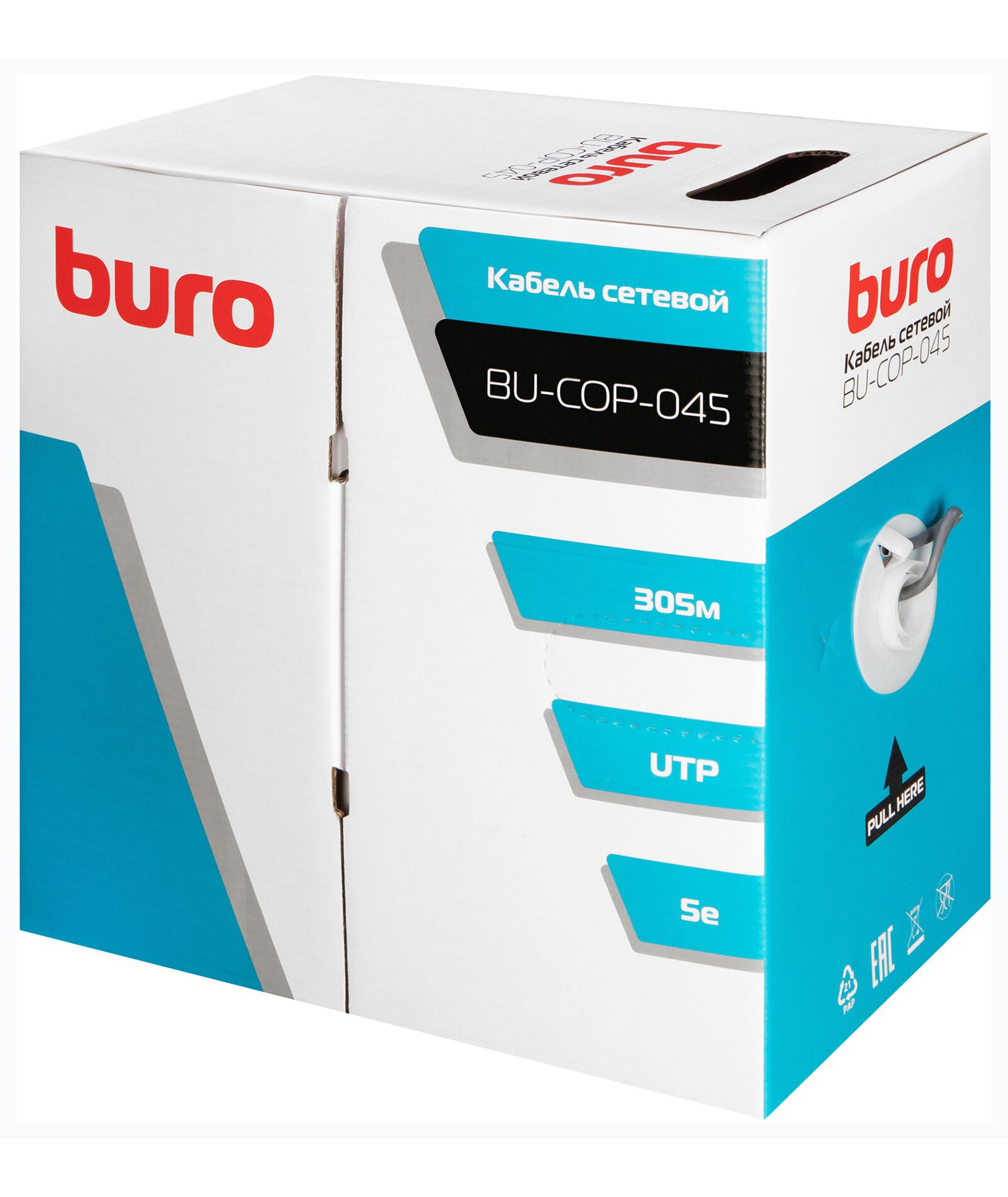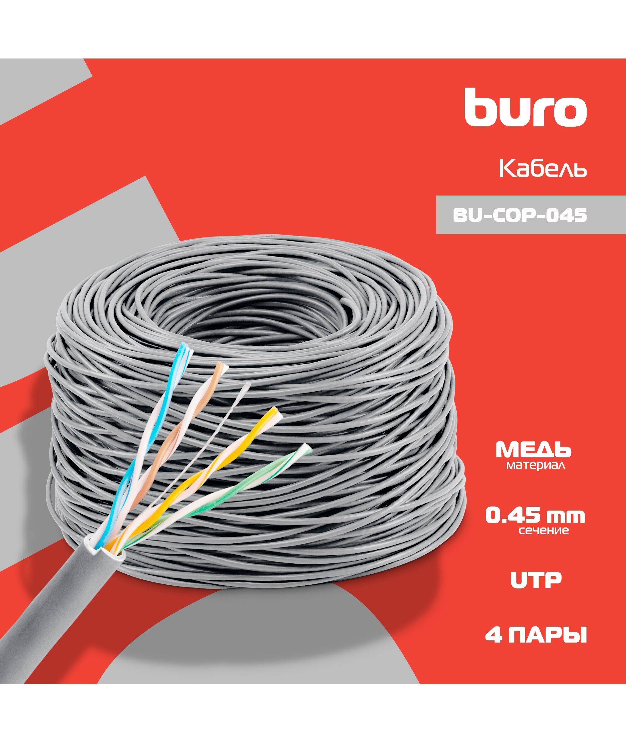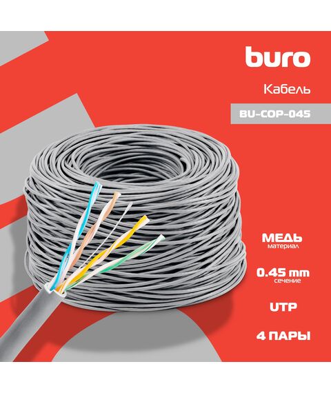 Кабель сетевой BURO BU-COP-045 UTP 4 пары cat.5E solid 0.45мм Cu 305м серый