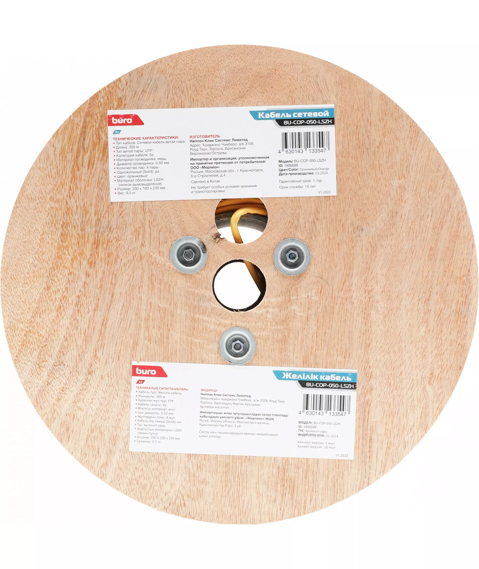 Кабель сетевой BURO BU-COP-050-LSZH UTP 4 пары cat.5E solid 0.50мм Cu 305м оранжевый
