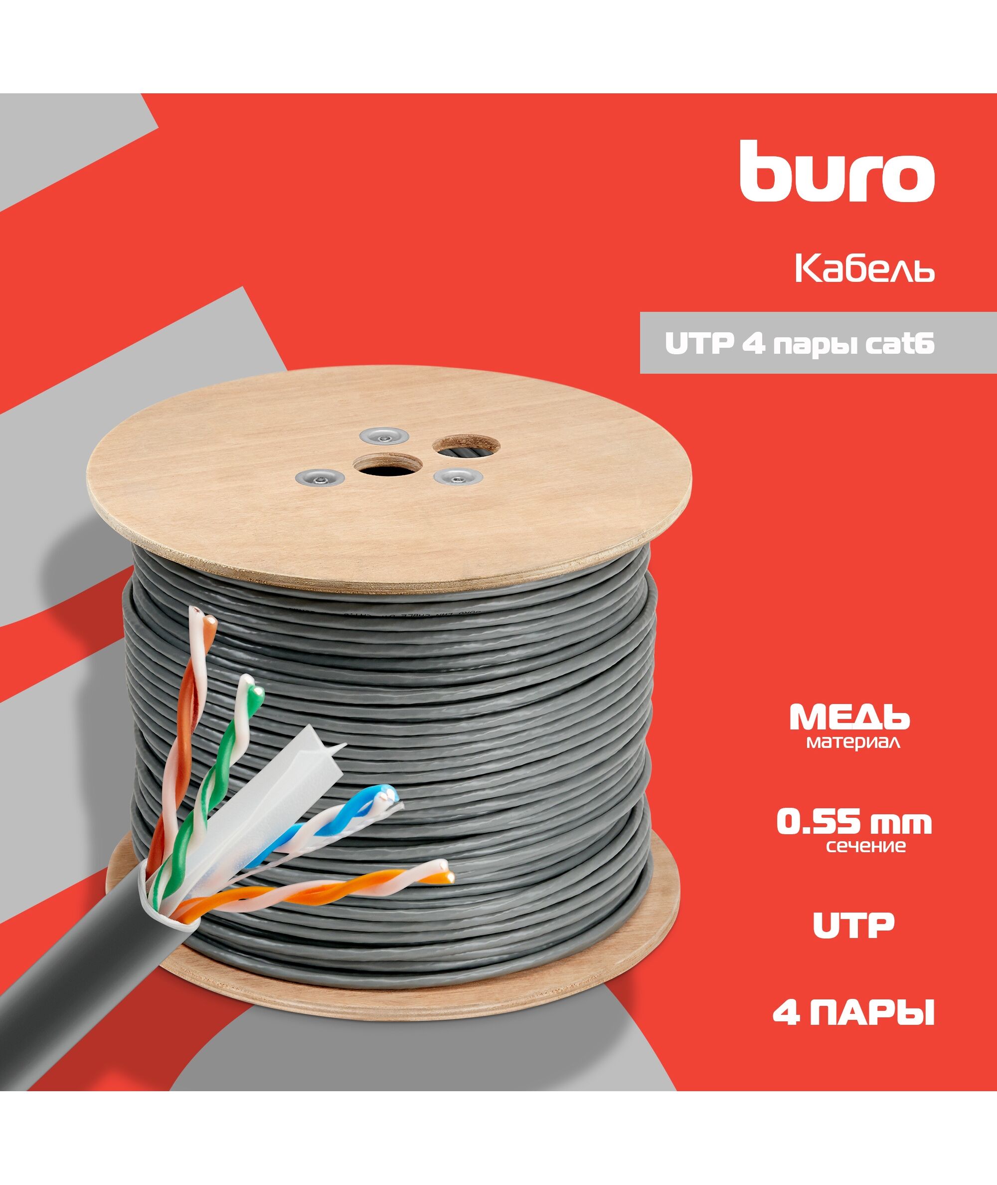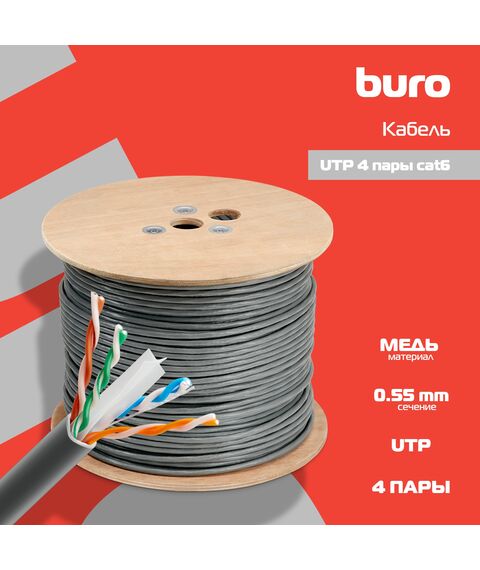 Кабель сетевой BURO BU-COP-055 UTP 4 пары cat.6 solid 0.55мм Cu 305м серый