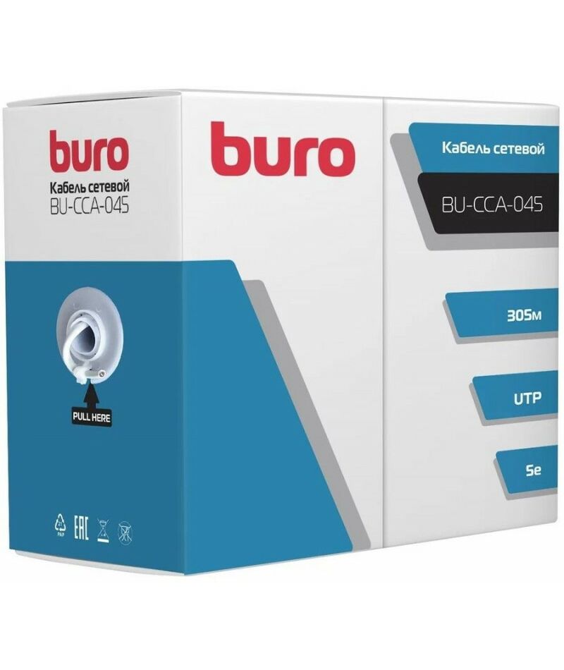 Кабель сетевой BURO UTP, cat.5E, 305м, 4 пары 0.45мм, CCA, одножильный (solid), серый [BU-CCA-045]