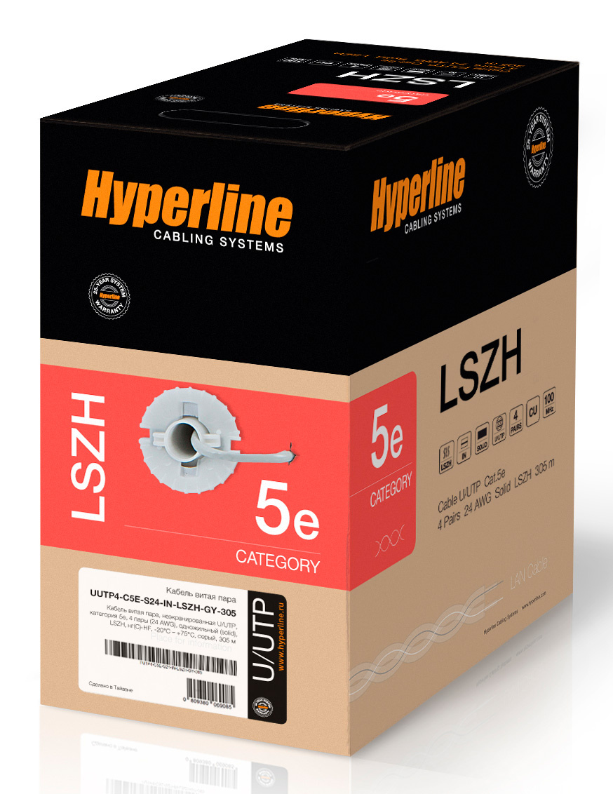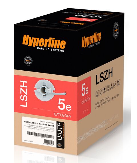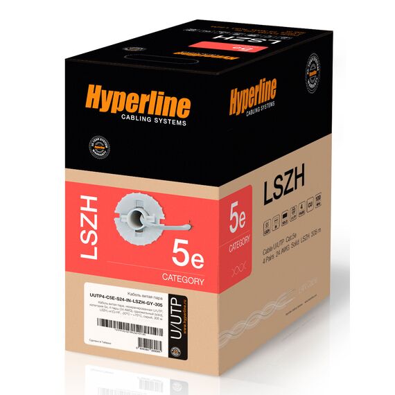 Кабель информационный Hyperline UUTP4-C5E-S24-IN-LSZH-GY-305 кат.5E UTP 4 пары 24AWG LSZH внутренний 305м серый
